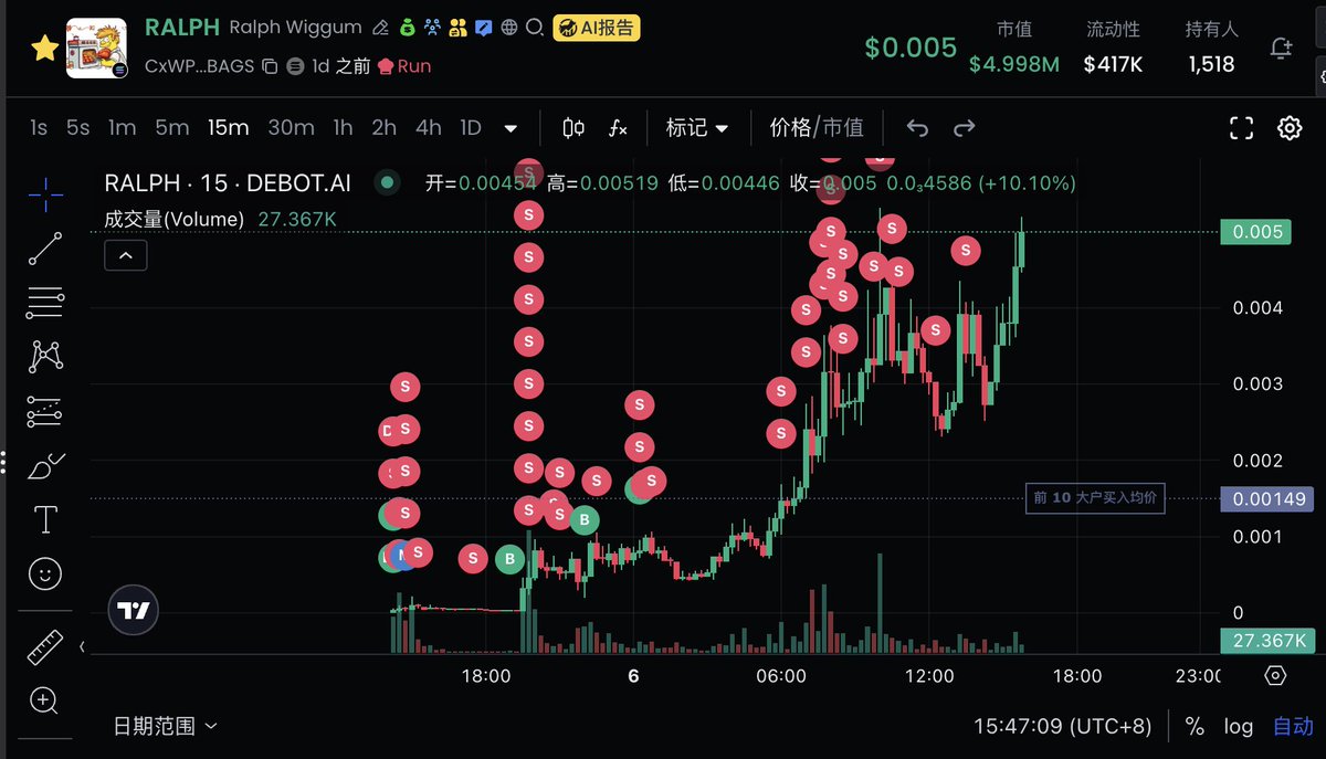 Bags的 $RALPH 新高5m。 @GeoffreyHuntley 也学聪明了,下午发了bsc的捐款推文然后又删了。这波来说bsc全面落后了,领先的币没有正规的cto浪费时机,现在又出来个新的分流。不能说现在bsc的没有任何反超的机会,但确实也浪费了最好的机会。