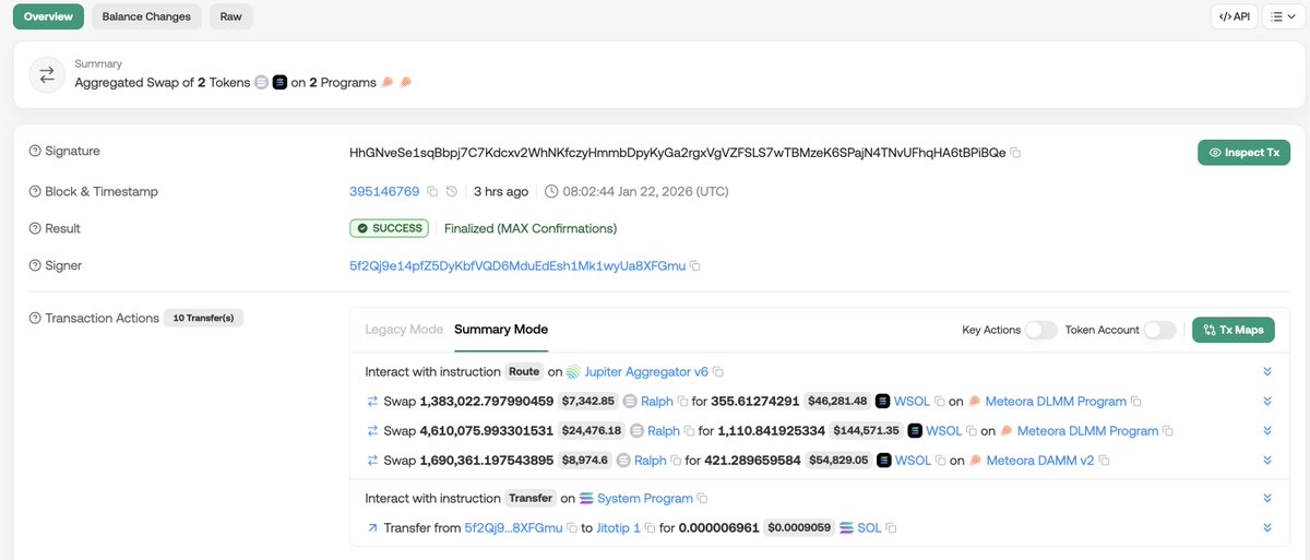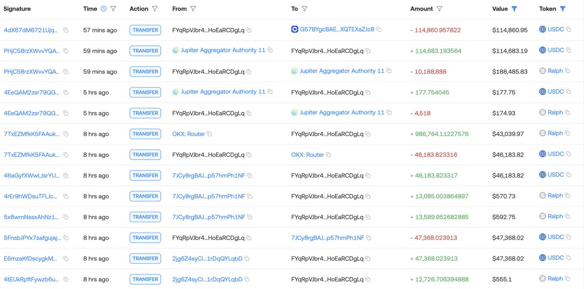 Eleven hours ago, a newly created wallet FYqRpV spent 470,000 $USDC to buy 10.19M $RALPH. Shortly after the purchase, $RALPH crashed. He sold all 10.19M $RALPH for only 114,861 $USDC, losing $355K in a few hours.