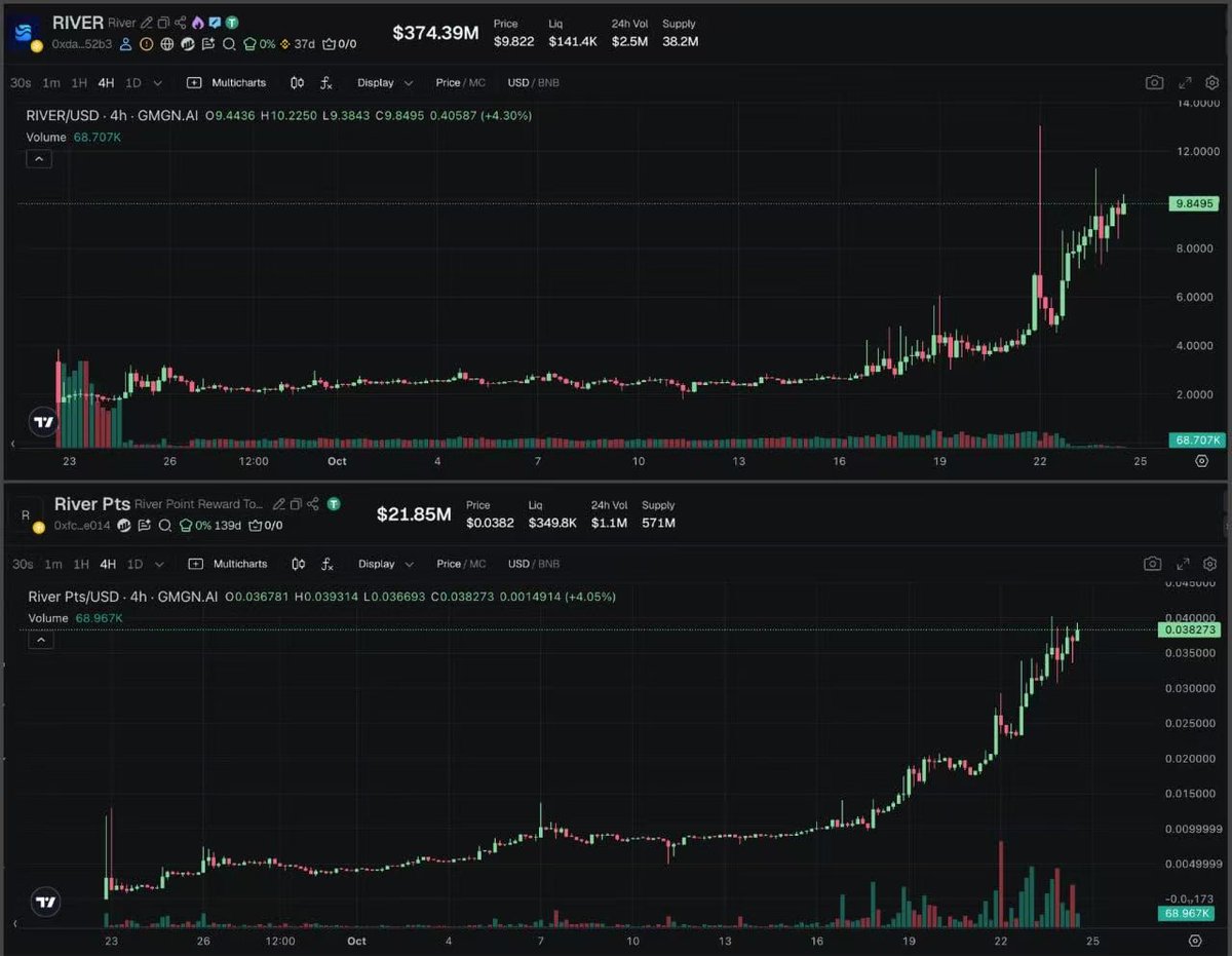 双轨机制形成增长飞轮:Pts 积分与 $RIVER 相互推动,Alpha 项目空投后表现突出。