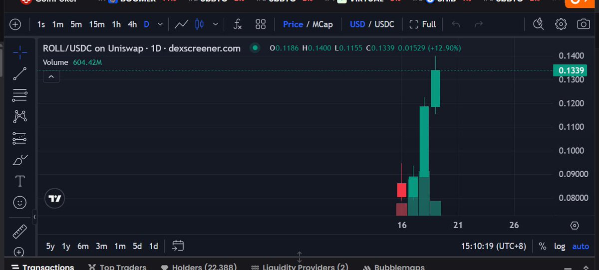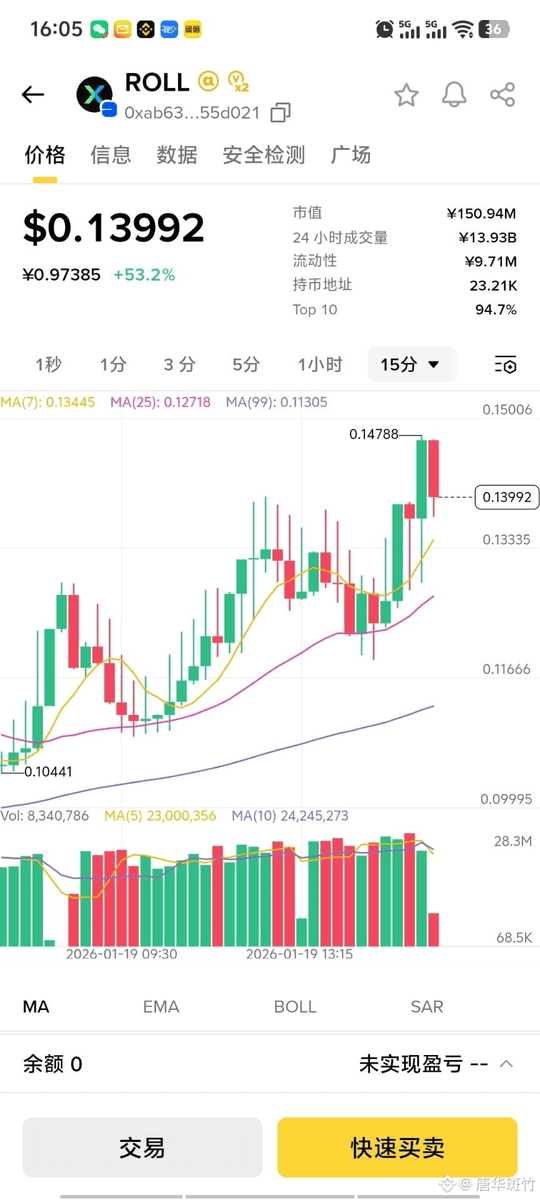 意难平,前天挂的 $ROLL 没买入,当时价格就是在我挂单价附近,但因为深度不怎么够,即时差价有点大,我就挂了个限价单,没想到这个币价一直长,都不带回头的,大盘跌也照样没影响它,难道这就是强庄的实力吗?麻了 @rollxfi 这个项目其实我关注很久了,团队实力挺不错的,以前是主做 BTC 赛道,后来大家也知道这个btc 二层实在是没多少人关注,连 BTR 的表现都不怎么好,然后团队把重心转移到了 Base 上面,继续深耕 perp 赛道。 大家也知道现在perp依然是市场最热的叙事之一,各大公链都在猛推自家链上永续产品,而 RollX 已经是 Base 生态里 perp 赛道的龙头之一了。 目前的币价纯社区驱动,无VC、无机构抛压,车很轻,代币 $ROLL 目前上了 #Binance Alpha 和 Bitget ,按这个走势,感觉后续会有合约预期,甚至再猛一点说不定还会有现货预期,我现在准备等回调买一点币,下次我直接市价买入,再也不限价了😭