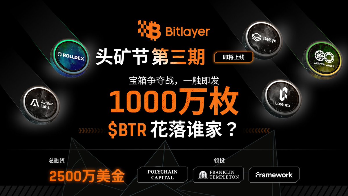 随着行情的回暖,还未上线的代币必须多搞点空投,一直比较火的比特币二层项目 @BitlayerLabs,最近又新出了第三期Mining Gala 头矿节活动,感觉快TGE了, 必须把握住获得 $BTR 的机会。 传送门:https://t.co/sDGxkYuiWz 活动时间: 挖矿节持续到11月30日 #Bitlayer #CryptoAirdrop #mininggala 本期的 头矿节 由 @BitlayerLabs 联合 @Rolldex_io@DeSynLab@avalonfinance_@jaspervault@LorenzoProtocol 发起,通过每天开宝箱的形式,为用户提供 高达1000万枚 $BTR 代币,参与活动的用户不仅能获得 $BTR 宝箱奖励,还可获得多种代币、积分与NFT等超值奖励。 最近Bitlayer刚完成 2500 万美元融资,由 Polychain Capital 、Franklin Templeton、Framework 联合领投,推动其二层技术在 比特币网络 中的创新与发展。相信未来 Bitlayer 会在去中心化交易、扩容、支付等领域带来更多惊喜。 只需通过官方入口(如 UXUY Wallet、OKX Web3、https://t.co/liipIejBkW 等平台)登录并完成任务,即可免费开宝箱获取丰厚奖励。 活动奖励分为三部分: 1️⃣ 1000万枚 $BTR 代币,任你领取。 2️⃣ 生态项目奖励: RollDex:$200,000价值 $ROLL 代币。 Jasper Vault:杠杆积分 jPoints 和月光宝盒 NFT。 DeSyn Protocol:价值 $500,000 的 $DSN 代币。 Avalon Labs:每人7500 Avalon积分。 Lorenzo:1,000,000 Lorenzo积分。 3️⃣ 完成任务可获得 Bitlayer生态联合勋章,总量限量发放,仅1万枚。 详细内容:https://t.co/FSLRnlZtlH