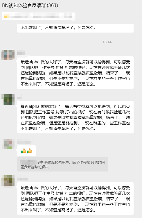 反而现在各大群里高兴的说BN钱包打击的好,对工作室来说是个好消息,因为可以继续潜水赚钱