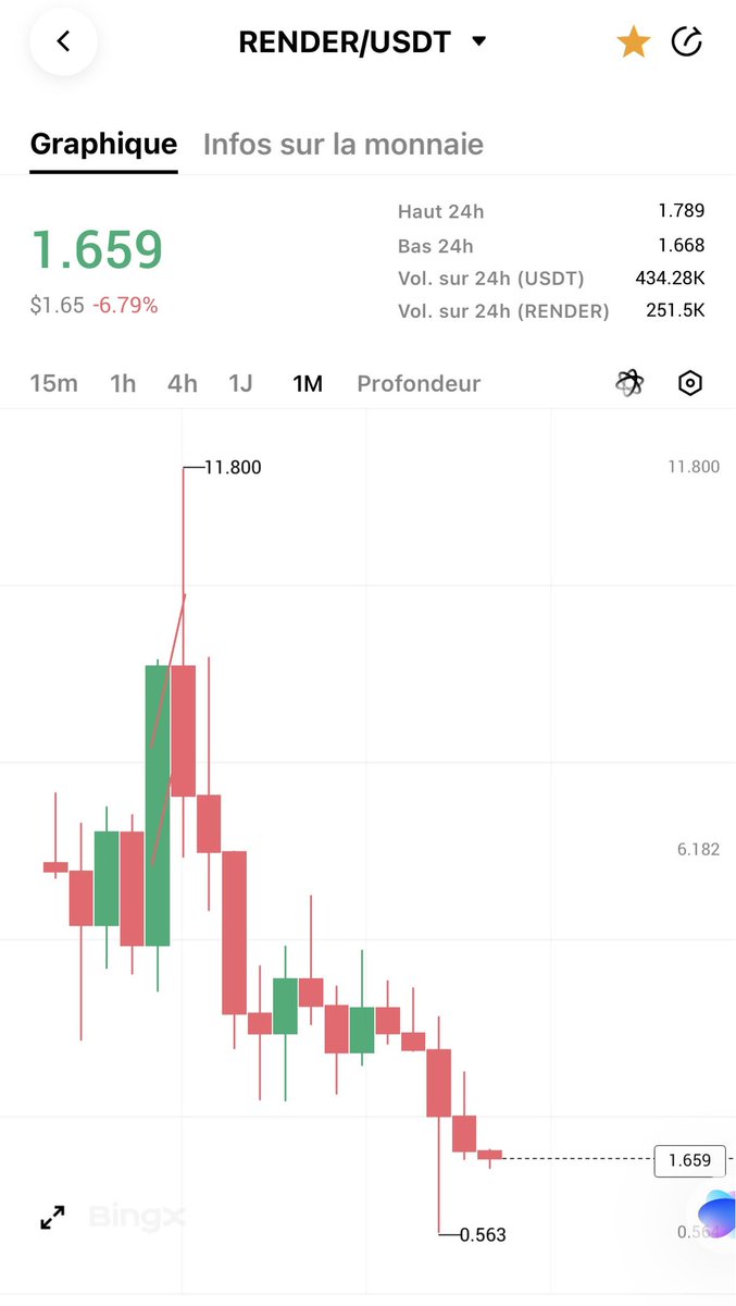 Price evolution in 1 year : $RENDER $11,80 👉 $1,60 $FET $3,50 👉 $0,23 $INJ $50 👉 $5 $ROSE $0,15 👉 $0,013 Today they just pumped 10%. And you are talking about altseason. Just to show you how delusional you are.