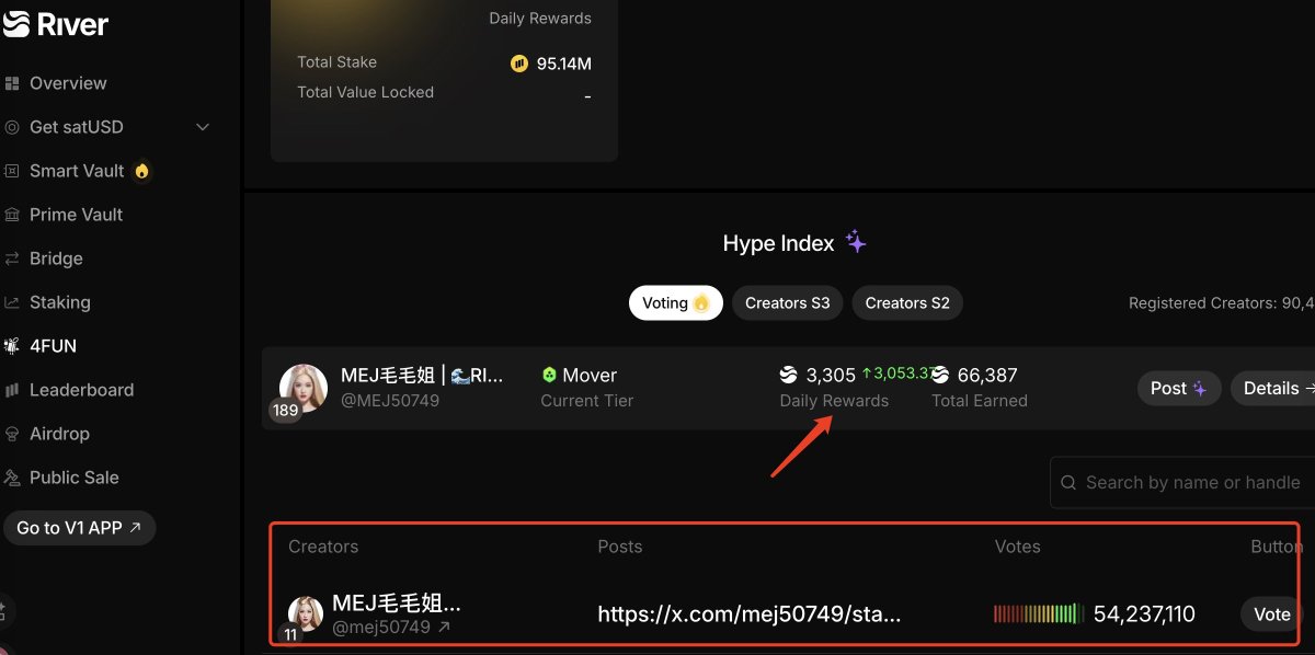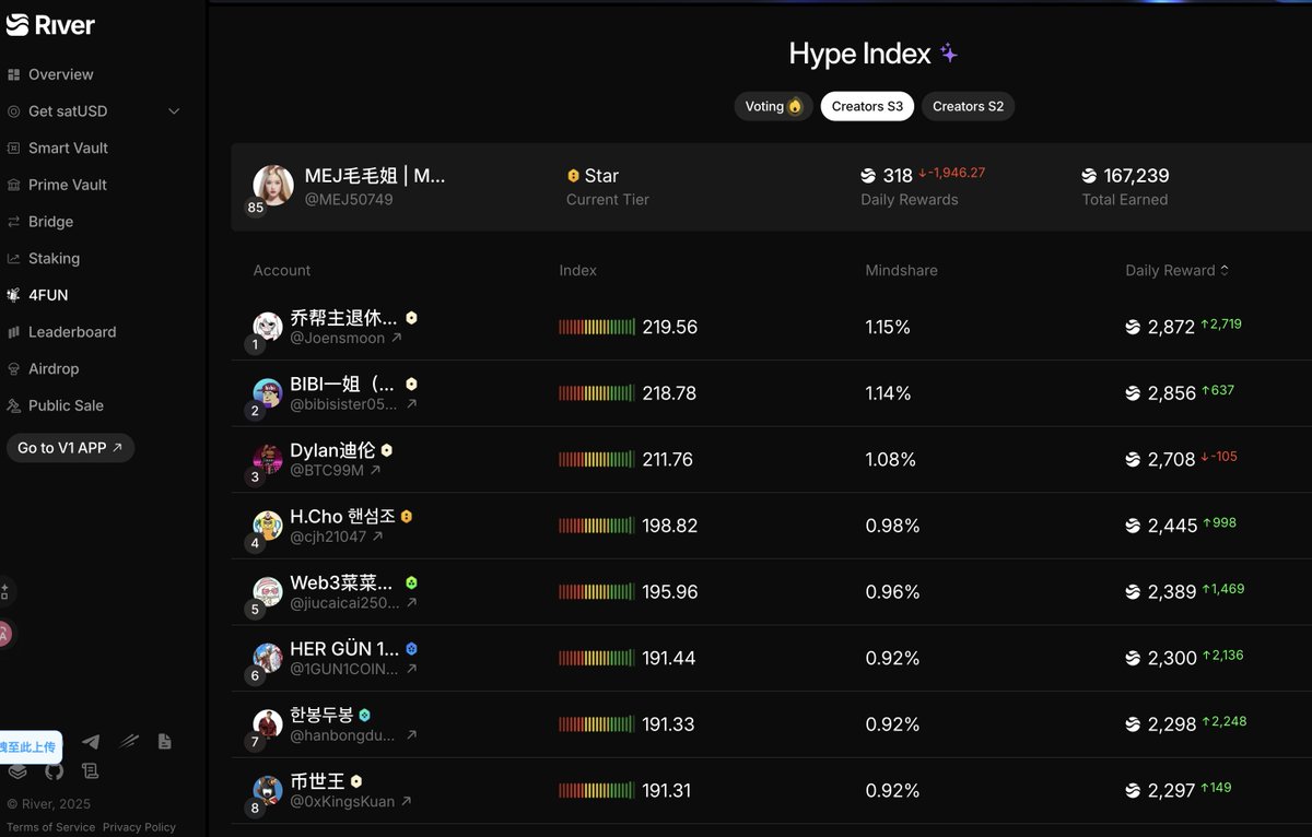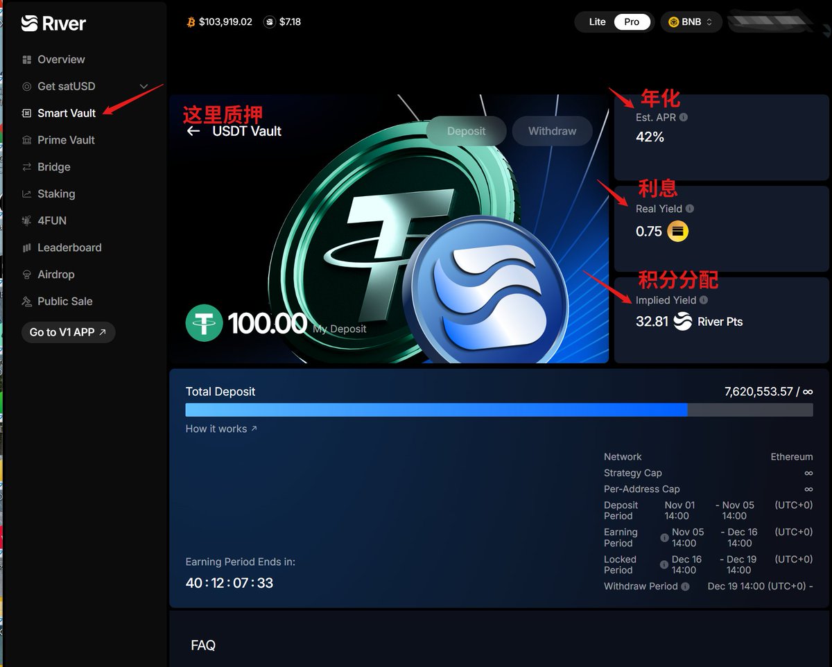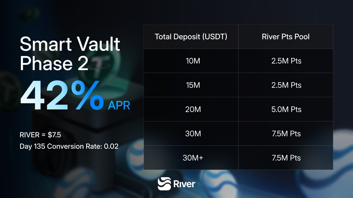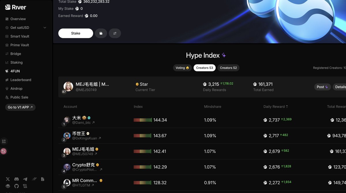 这些 Pts 后面可以拿去质押赚收益,或者兑换成 $RIVER ,最高有 27 倍奖励。