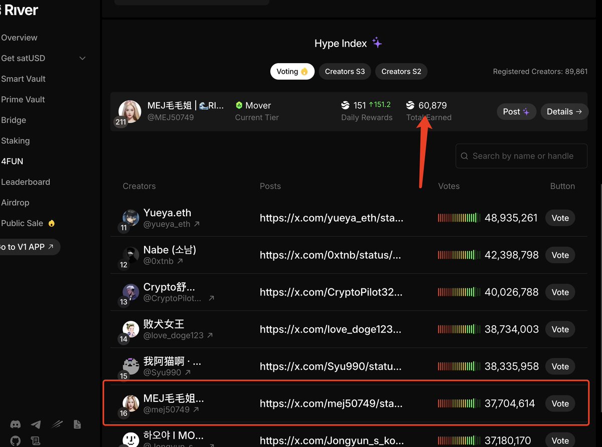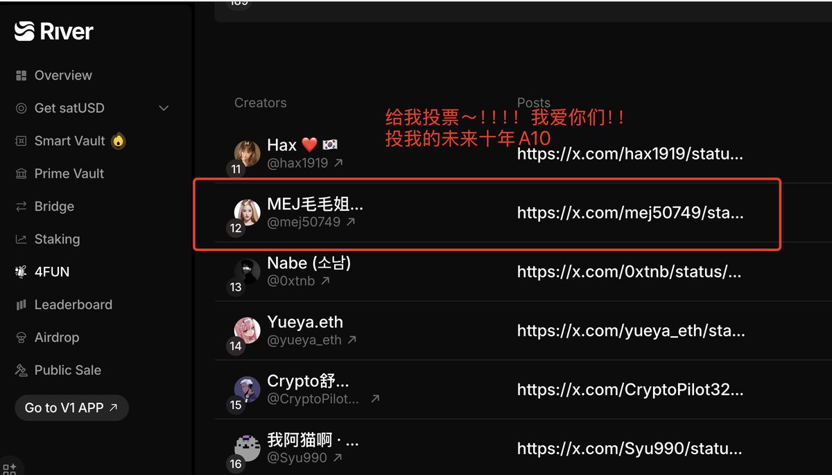 我在 @River4fun 的投票榜上,从前两千一路掉到 4200 名 🫠