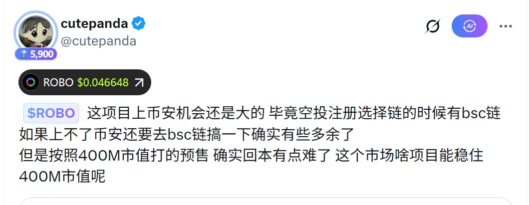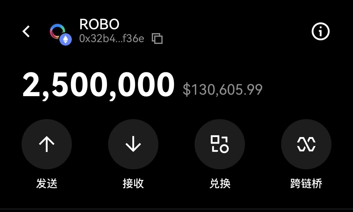 昨天在朋友家聚会的时候,他正感叹。以为昨天就一个alpha,结果第二个alpha空投的还是 $robo ,原来是因为上bn现货的问题啊... 其实这项目上kaito的时候,群友就问打不打。 我当时是觉得,4亿的市值其实还好,即使行情差应该也亏不到啥钱。结果果然,虽然没亏钱但是也没赚啥钱。就算现在这个价格也是回本赚一点点的状态,在现阶段的这个行情里,也算可以了。 现在bn和okx都上了,就差几个其他的大所了,距离满贯还有点空间,反正慢慢看吧 🤣