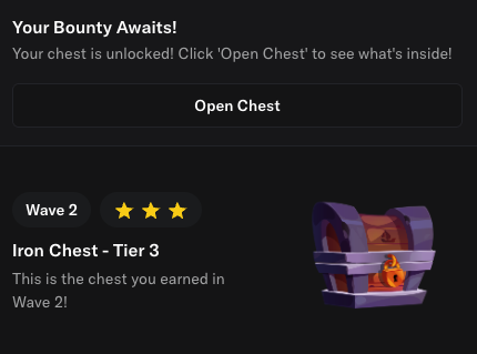 @opensea 第二波宝箱现已解锁!!!🚨】 你现在可以打开你的@opensea宝箱并领取奖励。 ✅ 打开宝箱:https://t.co/UsY6g0dRWA 所有参与过的用户都会获得一个 Treasure(宝物),其中包含 $SEA 代币(将在 TGE 可领取)。 部分用户还会额外获得 NFT 和额外代币。 很多人会发现自己的 初始宝箱已经自动升级到更高等级。 这是给予在早期 Waves 中积极参与用户的奖励。 第三波活动现已开启。