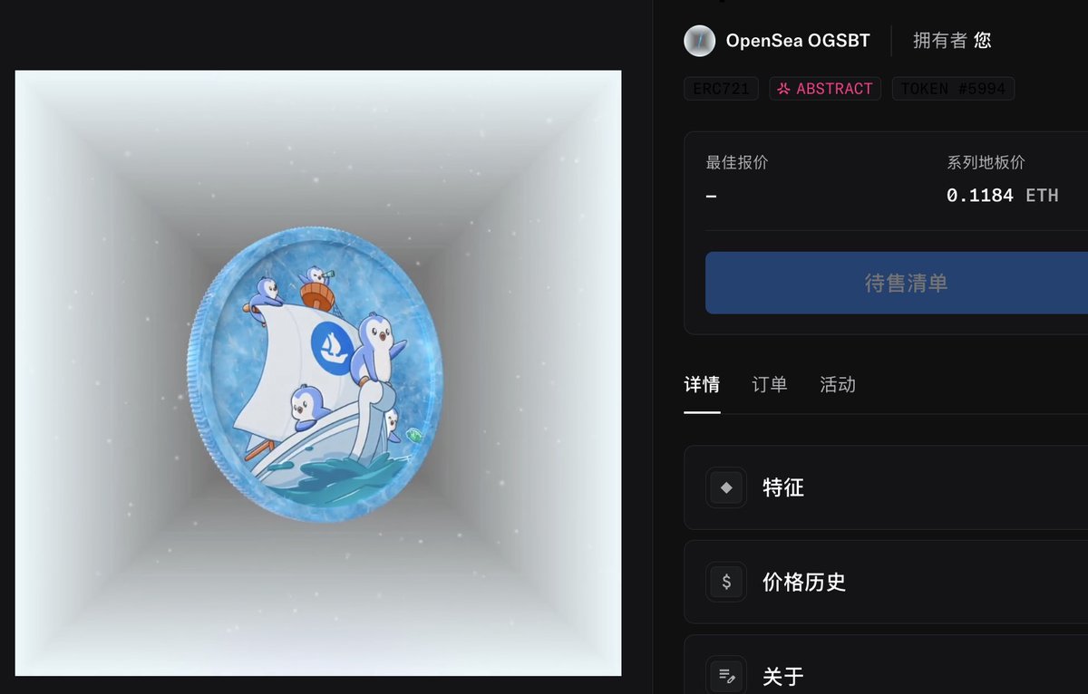 🪂胖企鹅、OpenSea联名SBT出炉,符合条件的速领! OpenSea OG SBT:要求在OpenSea上从未出售过Pudgy Penguin或Lil Pudgy,SBT已空投到符合条件的地址;如果你的NFT发生过转移,SBT会空投至初始钱包 OpenSea Penguin SBT:奖励给所有在OpenSea上购买Pudgy Penguin或Lil Pudgy的买家;Wave4活动Tier 5 Rewards Chest及以上用户均可领取 领取链接:https://t.co/weE8BASxbN 以上两个SBT均部署在 @AbstractChain ,几乎可以确定就是空投凭证,一是Opensea空投,二是Abstract空投,因为胖企鹅向来重视社区成员的忠诚度,Opensea也表达过类似观点。 恭喜拿到SBT的老铁,提前锁定 $SEA 和 $ABS 空投。 @pudgypenguins @opensea #Airdrop