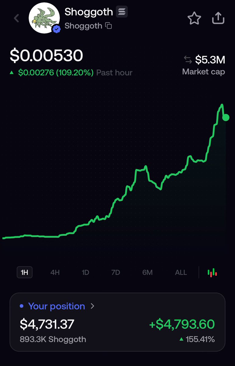 $Shoggoth 涨疯了 现在5.3M了 我中间出了个本 卖飞了不少