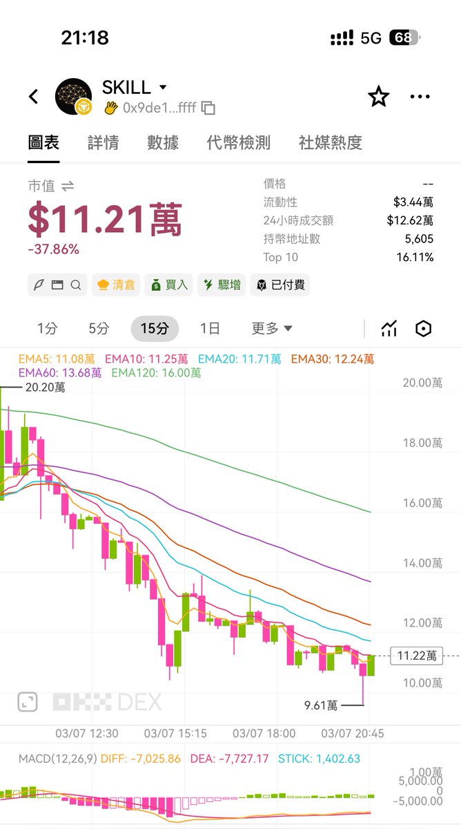 昨天就一直在关注这个项目 $Skill ,但是没上车,因为没钱买了😓 项目方是黑客松第二名,技术看起来是蛮好,方向也不错,昨晚最低的时候是4万,刚刚涨到20几万,只要没有人进去P,这项目应该还是会不错的,虽然没有买入,但诚心的祝福 #skill