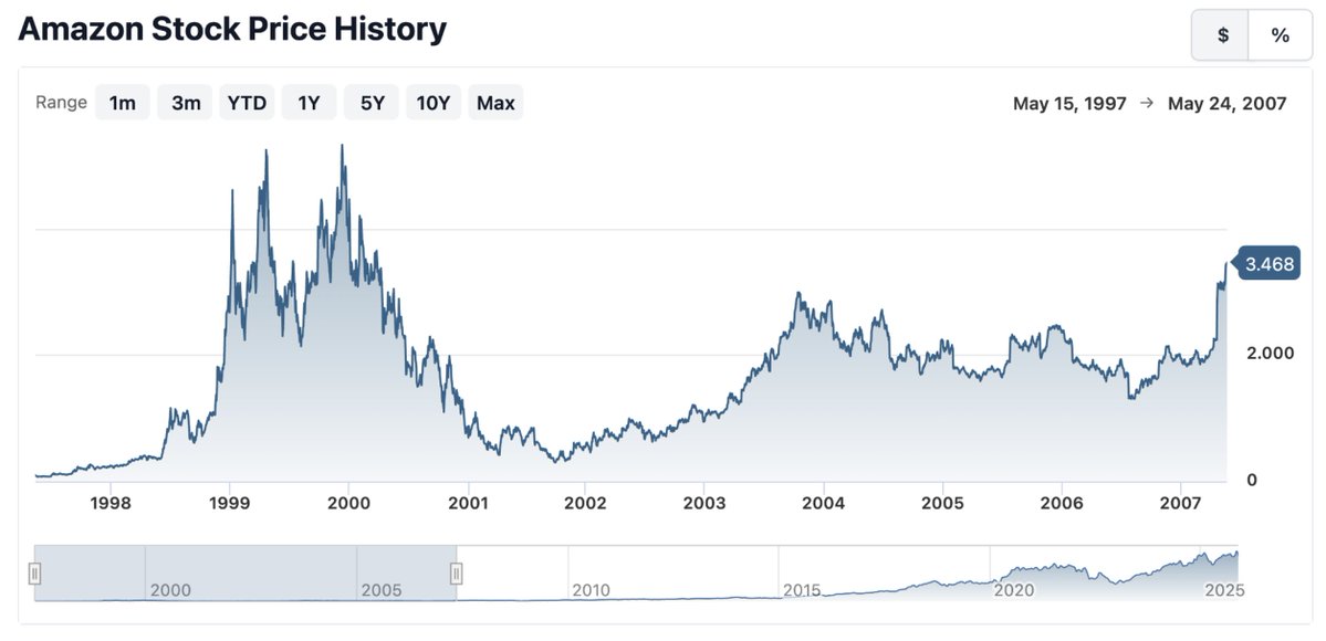 Ethereum just turned 10 years old. This is what the first 10 years of Amazon stock looked like: