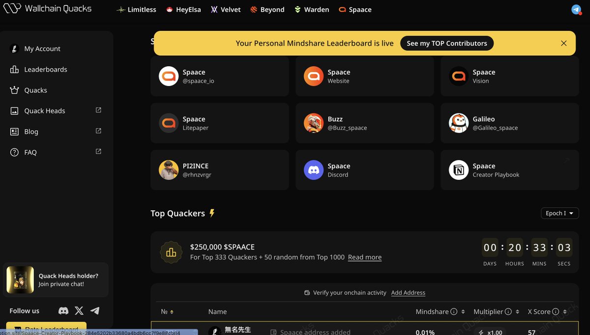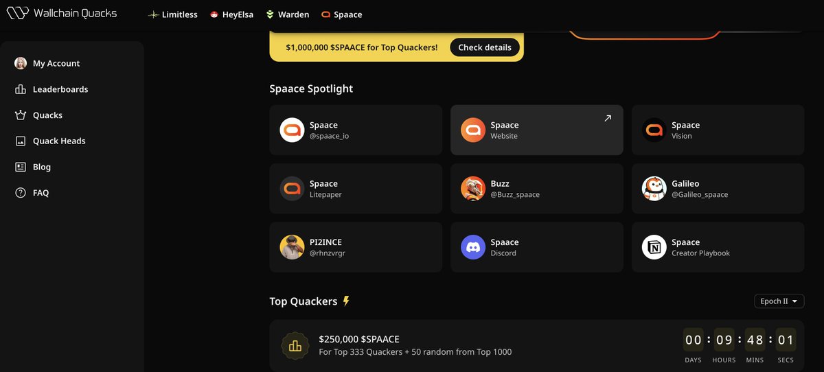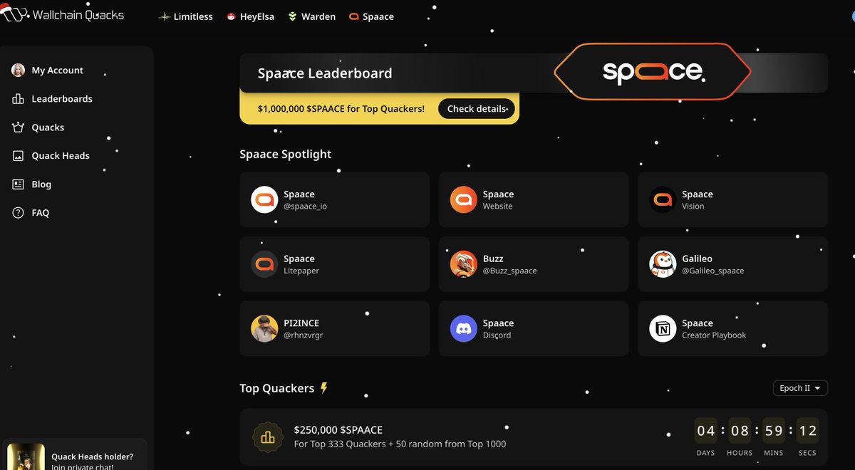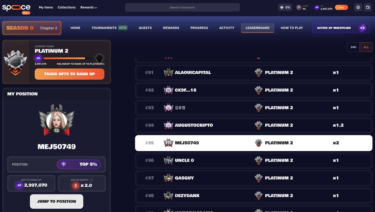 I finally reached P2 on Spaace. 24h rank: #55. @spaace_io just introduced a new metric on the website: Spaace Score. It measures loyalty based on: • how many NFTs you list • how exclusively you list them on Spaace Higher score → higher chance to unlock Quantum Chest rewards. This turns Spaace into more than a venue — it becomes a home base for liquidity. Platforms that lock liquidity early tend to dominate when attention arrives. BTW, 2Days left on @wallchain @quacks_lady @spaace_io @cookiedotfun $spaace #quack