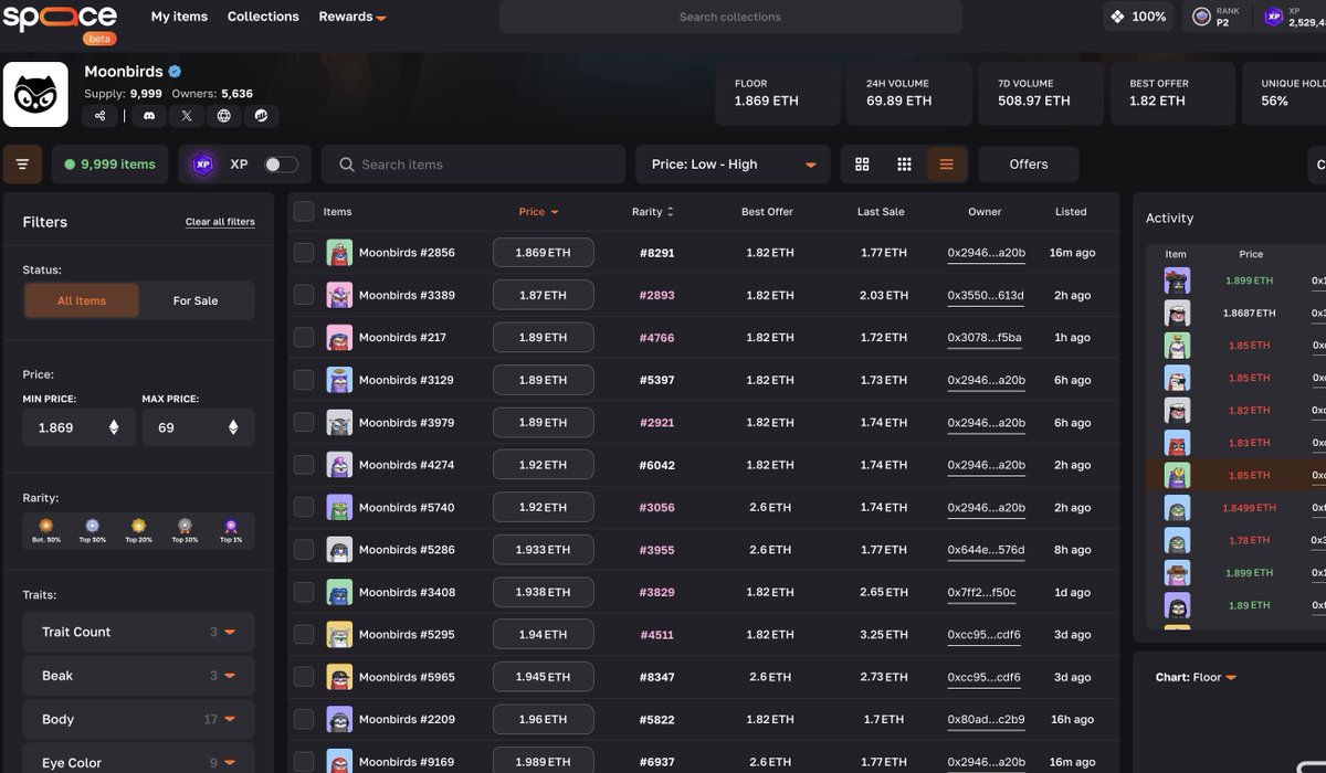 Moonbirds Momentum → Why Spaace Is Positioned Moonbirds attention is rising again. A potential token airdrop for holders is being priced in — and when that happens, trading activity follows fast. Here’s why Spaace matters in this phase: • fast offer execution • smooth Pro Mode for active traders • no lag during volume spikes When blue-chip NFTs heat up,traders migrate to platforms that don’t break under pressure. Spaace looks ready. @spaace_io @wallchain @cookiedotfuncn @cookiedotfun $Spaace