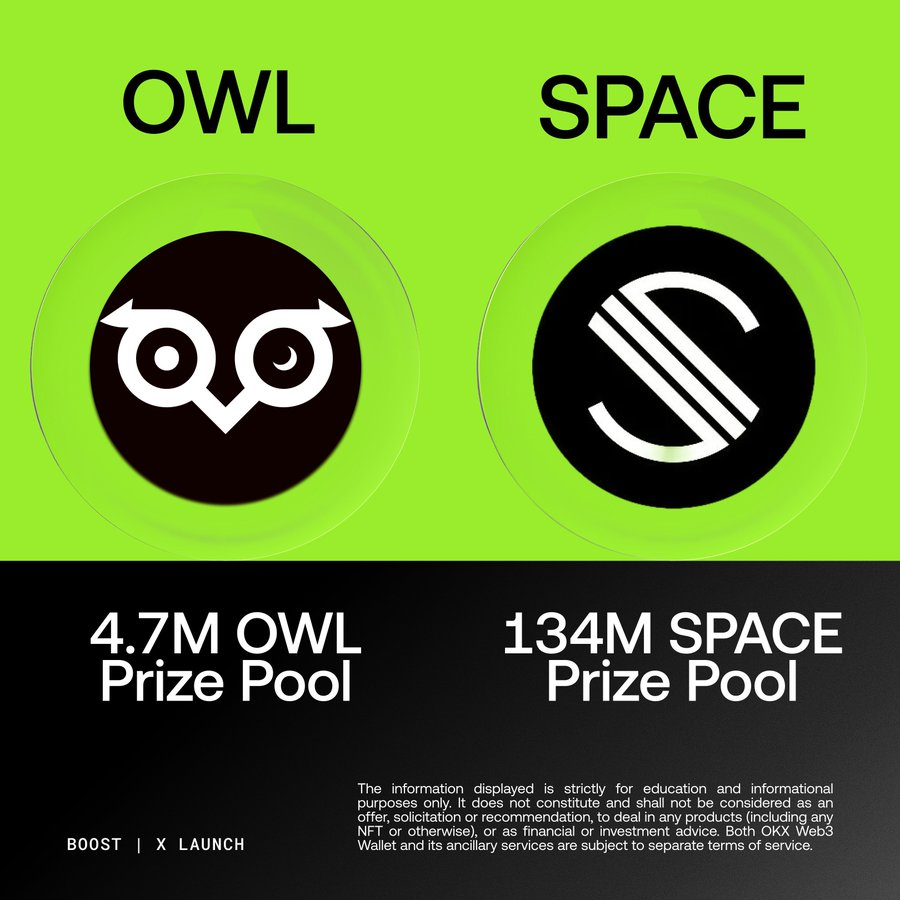 @spacecoin 和 @Owlto_Finance 大家有积分的记得投入,奖励金额分别是 134.4 M $SPACE 和 5,724,098 $OWL