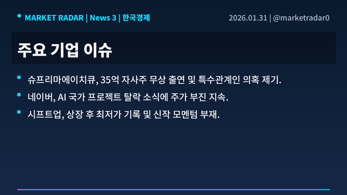 📅 01월 31일 (토) 23:03 기준 | 주요 소식 정리