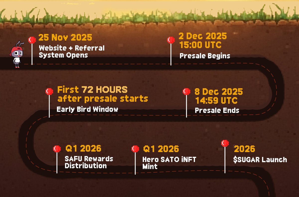 🐜 SAFU SATO Presale:一次由社区驱动的预售机制 今晚开始 $SATO