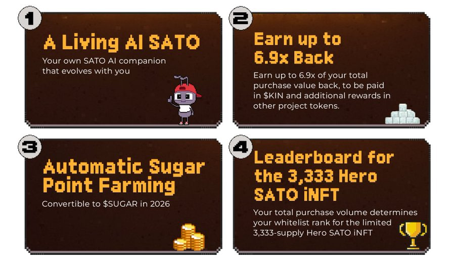 - 상위 구매자들에게 26년 초 민팅 예정인 Hero SATO iNFT WL 1265개 지급(총 발행량 3,333개)