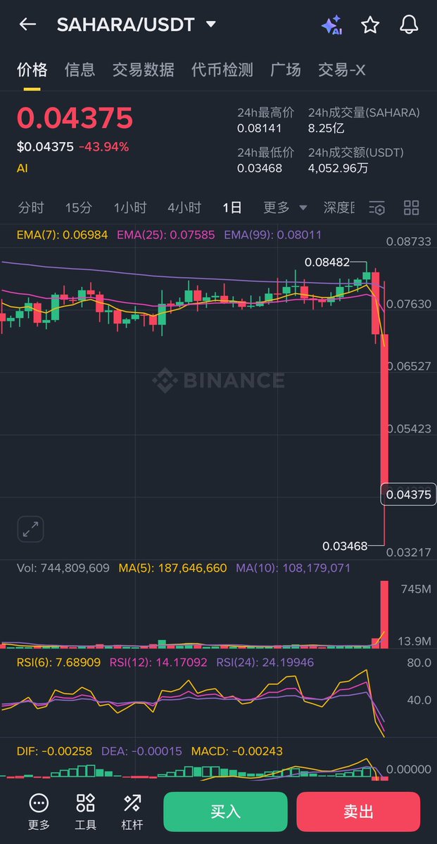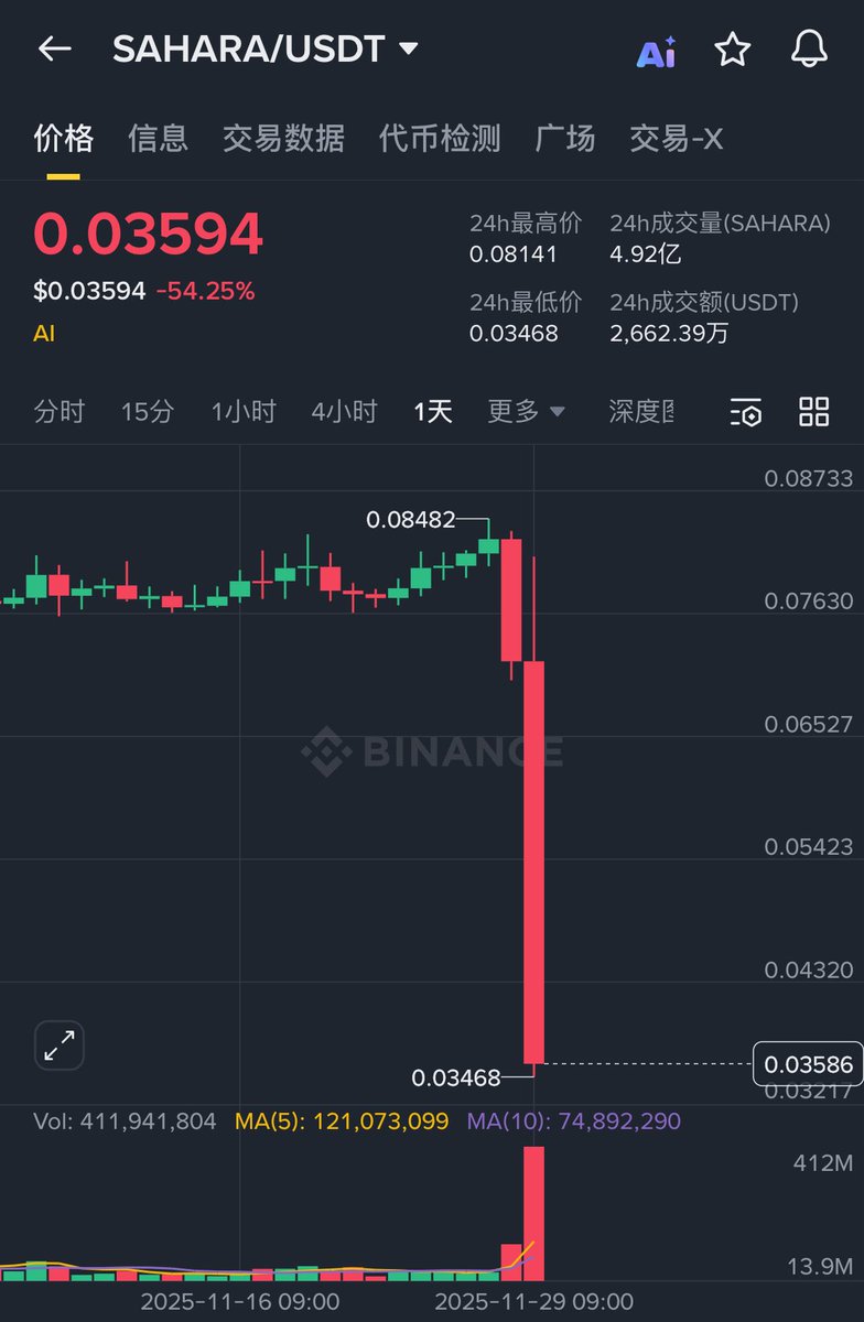 发生了什么? @SaharaLabsAI 突然跌了40% $sahara
