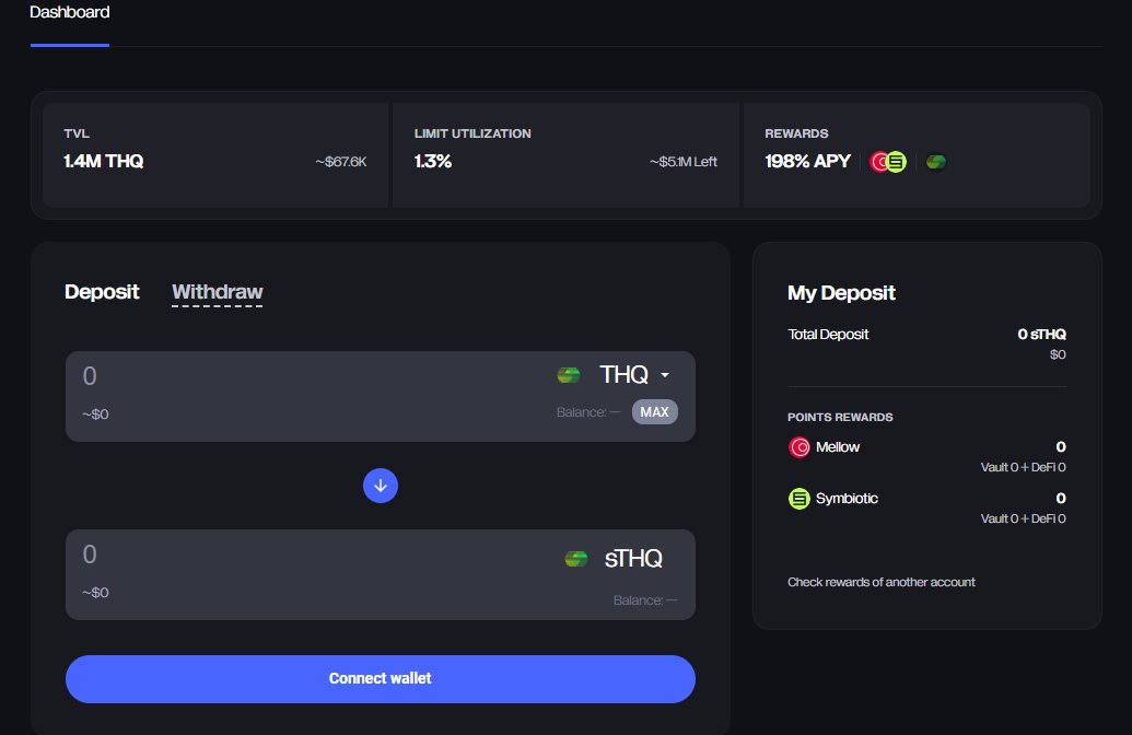 指定用户可参与有激励的 TVL 启动活动,获得的积分奖励将在 TGE 时兑换成 $THQ 代币。