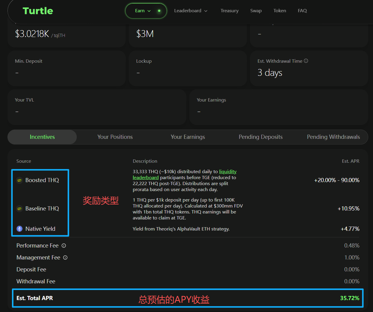 基础 $THQ 奖励:年化 10% 左右
