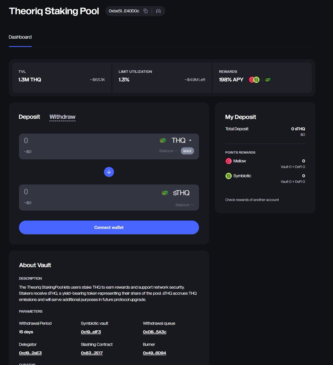 a) 直接存款:每 1 ETH 每周可获固定积分,积分按当周总池比例瓜分 $THQ;