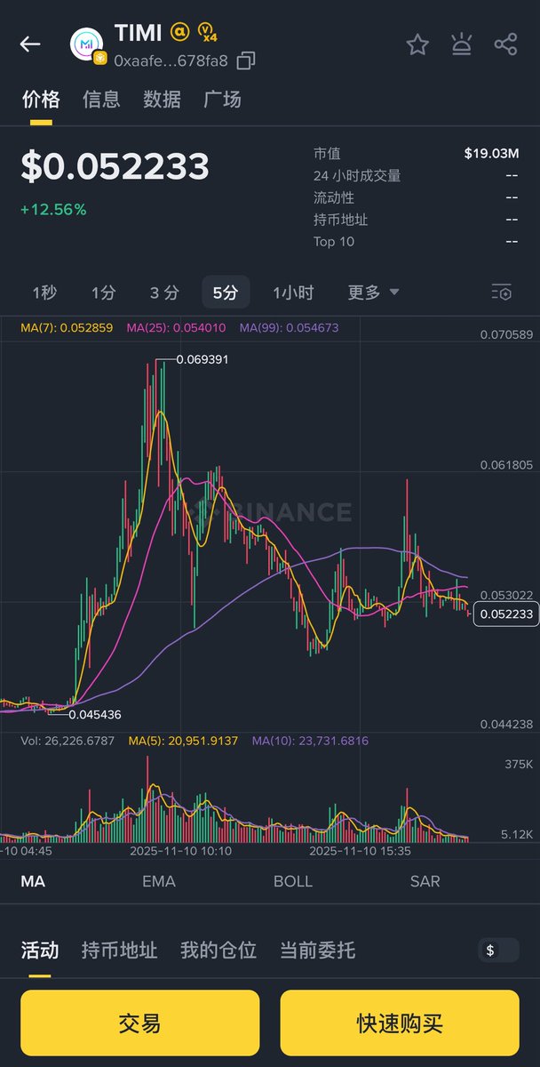 前几天看 $MMT 越看越气 1.3 买的跌到了 0.38 我看 $TIMI 在下跌行情纹丝不动 果断选择割肉换仓 这次竟然不反指