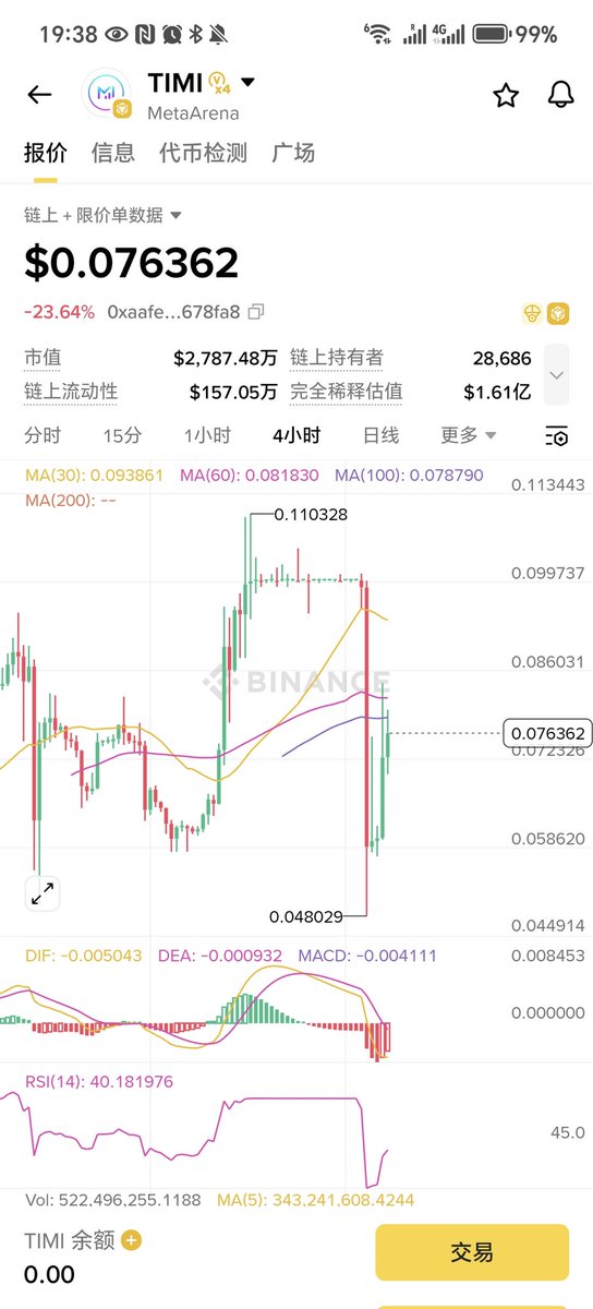 $TIMI 24小时40多亿美金交易量,项目方绝对是有良心有格局的团队,并且有强庄做市,稳得一批。这么大的交易量,会上合约吗?0xaafe1f781bc5e4d240c4b73f6748d76079678fa8 @MetaArenaGaming 币价在新高之后一直很稳,看得出来是强庄,这几天在群里嘴都说干了,跟着上车的都有不少收益了。潜力很大,应该还会有不少空间。 币安链的风又要起来了,龙头无疑是最合理的决策,想研究的自己去看。