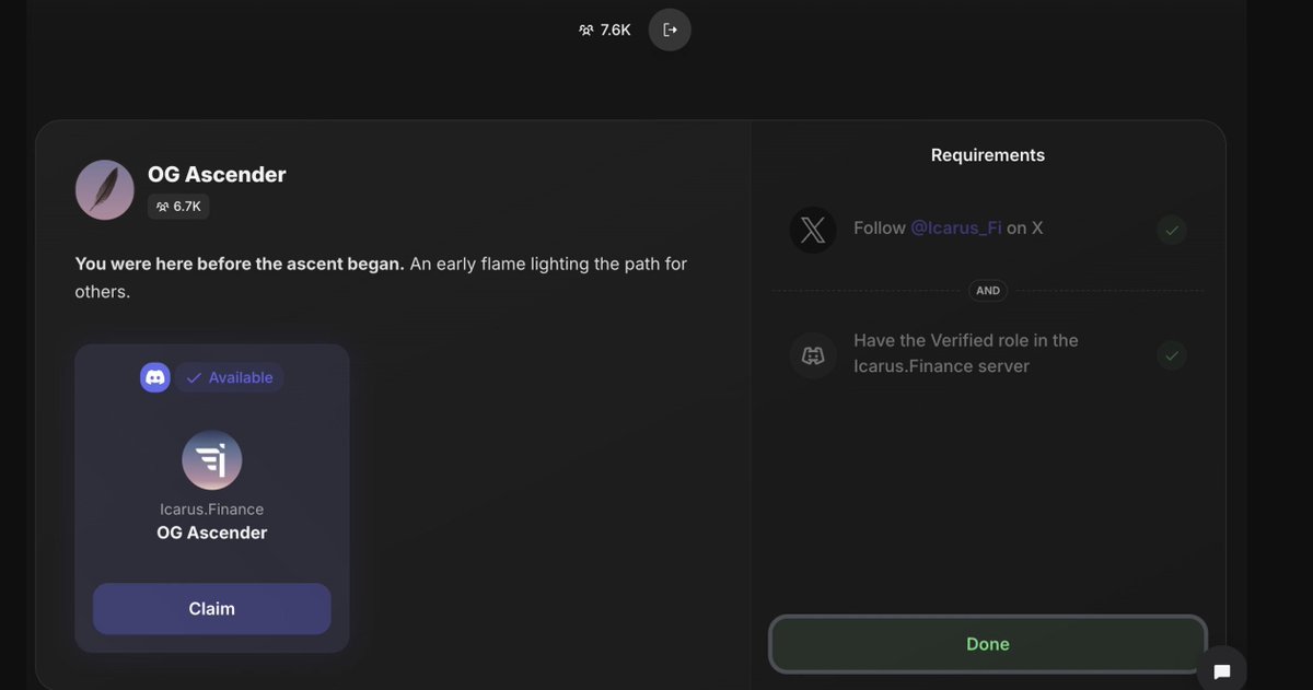 弱弱的问一句你们现在都在撸什个项目? 好无聊!!! Icarus 测试版 Ascender 已在 Risechain 上线 ,你们要不要做一下@Icarus_Fi的测试网任务 Icarus_Fi 是去中心化交易所(DEX)协议,被定位为 RISE 链生态的“流动性引擎”。项目原本在 BSC 链,现在搬到 RISE 链。根据 DC 公告和官方信息,测试网很可能会有空投,主网上线当天就会正式启动。 测试网操作指南: 1️⃣ 水龙头领取测试币:https://t.co/Yi2bWDSAPa 2️⃣ 测试网入口:https://t.co/cteGmdXK4X 完成领取后可以做以下操作: 1. SWAP:代币兑换 2. 添加/移除流动性:兑换后组 LP 3. 锁定令牌:LOCK 4. 仪表投票:Vote 权重主要在锁定令牌和投票部分。 3️⃣获取 OG 角色: 进工会拿 OG:https://t.co/82g0E43XUz 完成两个简单任务即可 4️⃣注册RISEx 候补名单 入口:https://t.co/kK6cuX2dC4