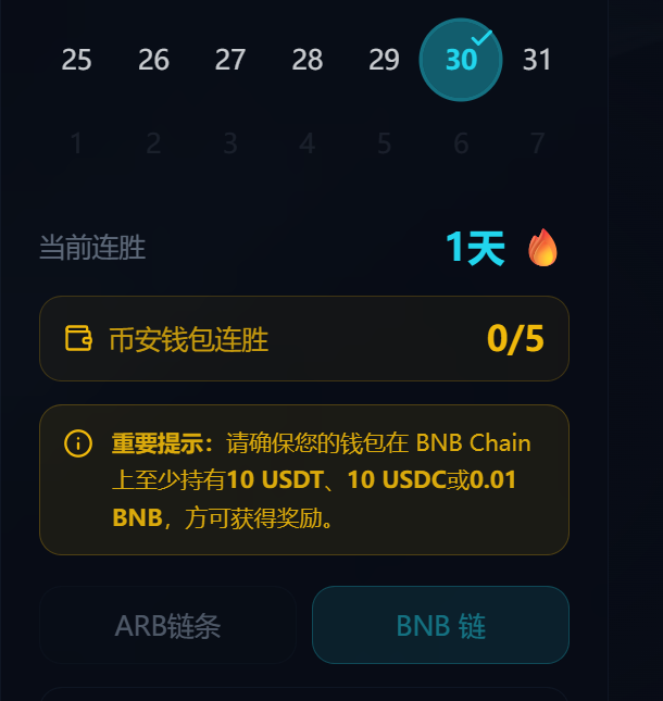 是否为有效签到:看「Binance Wallet Streak」的进度