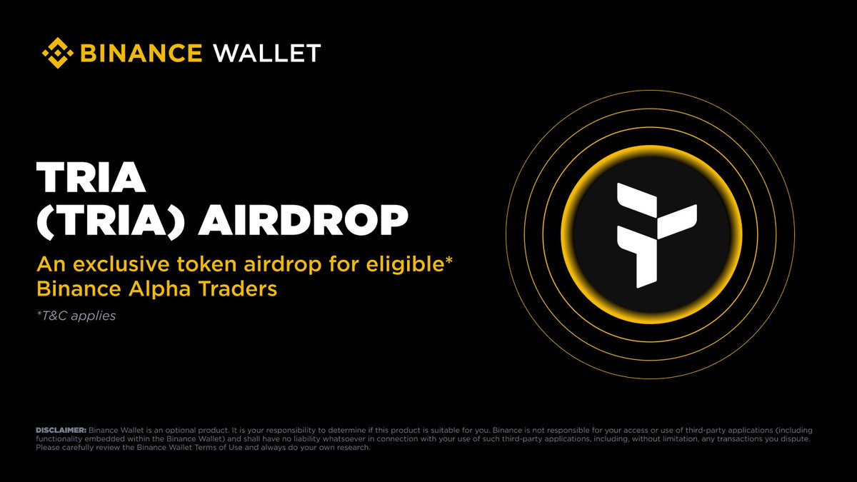 Tria @useTria 今天上线币安Alpha了:OKX Boost、Bybit 也同步上线,此前 Coinbase 宣布加入Tria 到上币路线图;