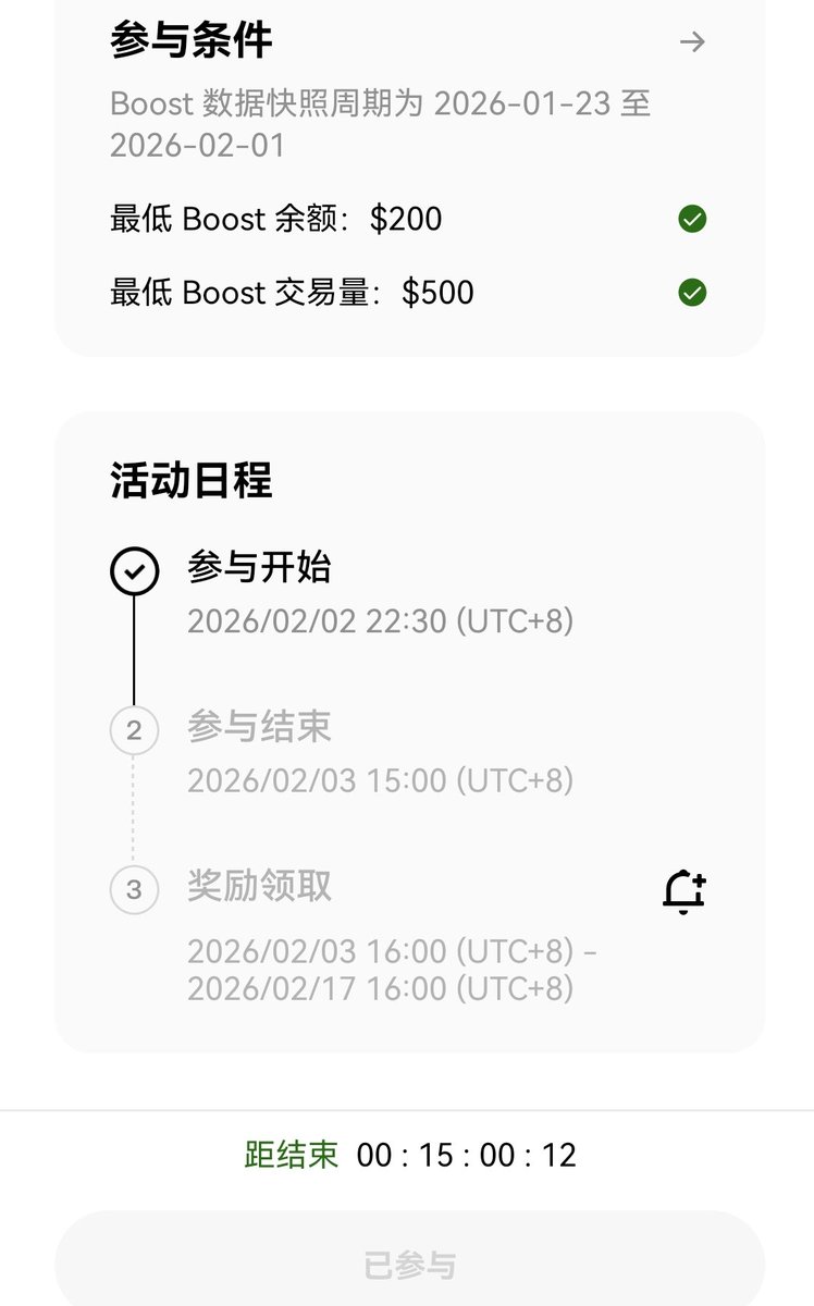 OKX 新一期Boost有积分的一定要参与下,明天就可以收米。 @useTria
