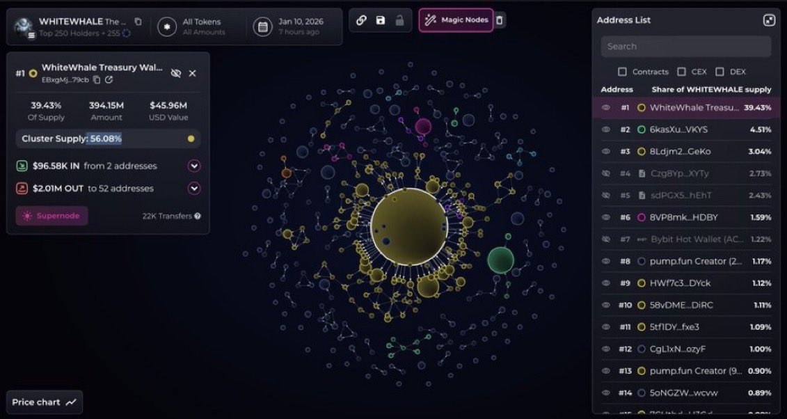 運営が大量保有して供給コントロールし、元気玉バブルマップで知られた $WHITEWHALE が遂に崩落。