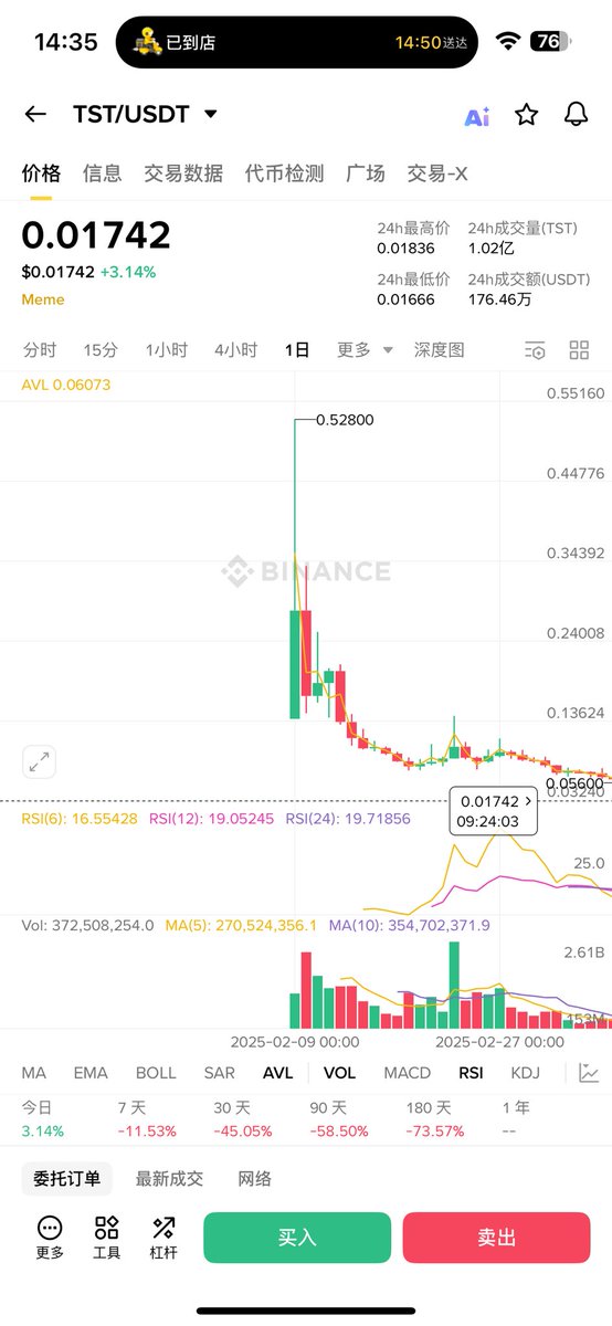 结果大概过了半个小时,手机直接发了推送,CZ还真回复了,虽然说的是不喜欢这种行为,但有了之前 $TST 的前车之鉴,才不到2M市值,还是猛拉了起来,我因为快要送晚高峰了,就出了本,剩下的挂了单,结果没多久就拉到了6M,拍断大腿