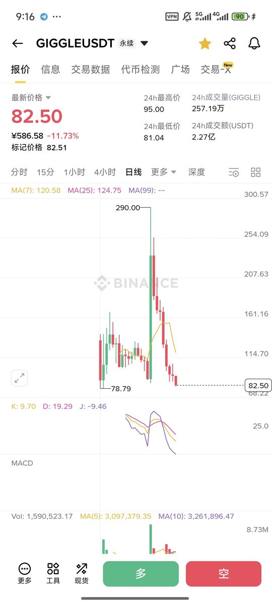 真的没必要过度纠结 $giggle 的走势的,如果你想回本的方式就是做空。 拿空单的我正在回本的路上,并且做空开始那天我已经不买入任何meme了,第一个上线现货高度决定市场后面的上限高度,后面预期最多能跑出5M-7M的标,所以做空➕不买=盈利 反之如果突破上限300M(不大可能)我也会重新回到meme市场