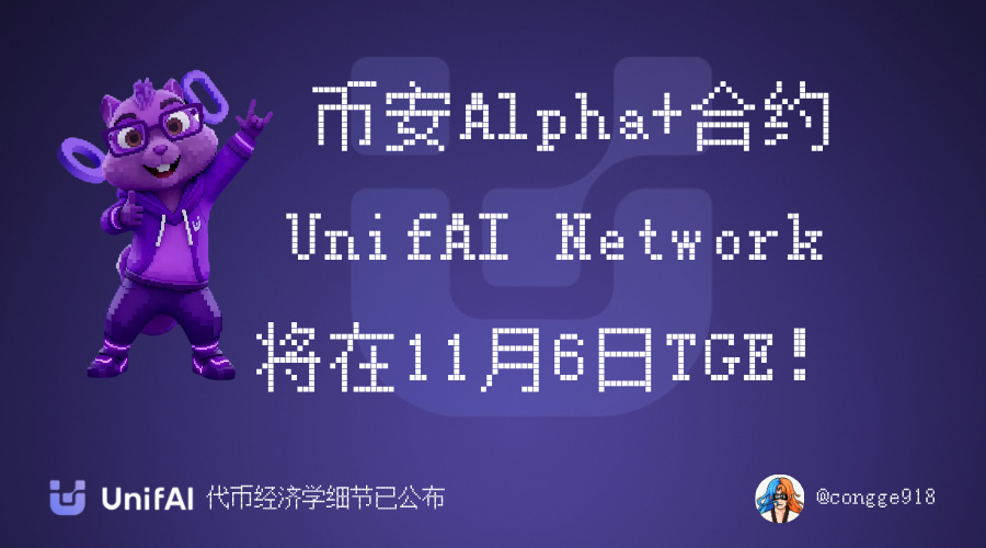 真没想到 @UnifaiNetwork 这么快就 TGE 了。 生态核心代币 $UAI 将在 11 月 6 日在币安 Alpha 和币安合约同时上线! 这个项目做的是的 AI Agent 平台,亮点是用户可以自定义自己的 Agent 策略,平台也会提供一些模板,灵活程度很高。 Agent 可以自动执行复制/创建的策略,功能还挺强大的。而推出 $UAI 代币也是为了推动生态的发展。 $UAI 不仅是支付媒介,也被设计为整个 UnifAI 网络的经济支柱,协调开发者、投资者和社区的长期利益。 了解下 UnifAI 的三层架构: ※ 应用层:由代理钱包、交易社区与自动化策略代理组成,$UAI 在此作为交易、结算和收益分配的媒介。 ※ 工具层:开放 SDK 及 TaaS/DaaS/AaaS 服务,$UAI 支撑开发者访问和调用 AI 工具。 ※ 基础设施层:AI 原生协议与跨链互操作系统,确保所有代理间的透明协作与价值流通。 $UAI 代币分配与归属: $UAI 总供应量为 10 亿枚,部署在 BSC 上,分配如下: - 协议开发:20% 支持核心技术与 AI 集成 - 基金会与国库:20.75% 维持治理与生态补助 - 团队与顾问:15% 奖励长期建设者 - 营销:18.57% 推动全球采用与品牌建设 - 生态与社区:13.33% 包含空投、开发者与合作激励 - 流动性:7% 保持市场稳定性 - 投资者:5.35% 战略合作伙伴与早期支持者 官方明确表示所有归属均分阶段释放,所以抛压应该不大,初始流通不多。 $UAI 的核心功能 ※ 服务访问:用于支付 AI 驱动的工具与策略服务。 ※ 治理:持币者可提案与投票,参与协议升级。 ※ 质押与声誉机制:质押 $UAI 可支持 AI 代理运行并获得收益。 ※收入分享:生态内交易与服务费用部分回馈贡献者。 $UAI 的赋能还是挺实用的,尤其是随着 UnifAI 平台的发展,对 $UAI 的需求会持续增加。 昨天分享了用 UnifAI 的 Agent 来实现自动交互 Polymarket 搏空投 ,挺有意思的,感兴趣可以体验下, 👇教程看这篇推文:https://t.co/W7QxIFc5Nj