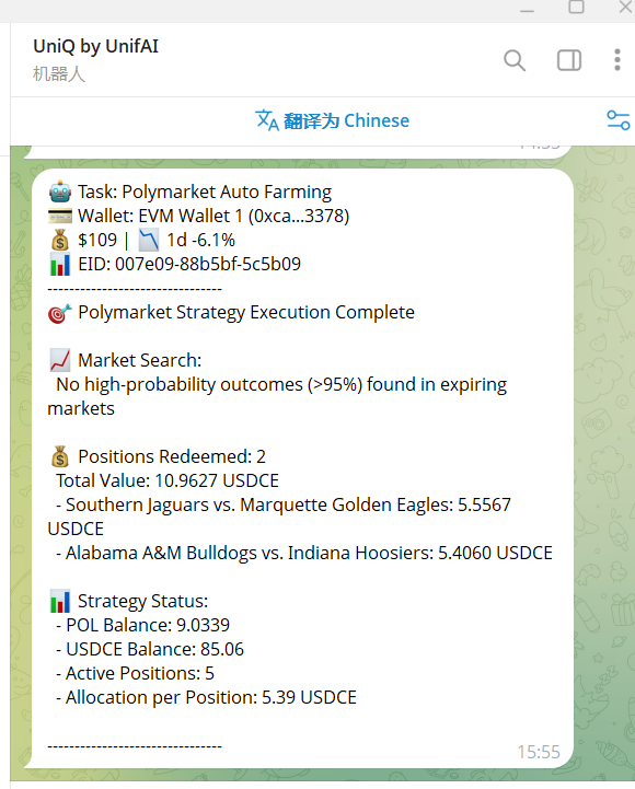 今晚 19:00 上线币安 Alpha 的 @UnifaiNetwork 关注下 $UAI 官方空投也正式上线了。 第一阶段的空投会在今天开放领取,之前有参与过交互的别忘了。 👇查询链接: https://t.co/S7NhJ4euHz 领取时间:今晚 21 点 另外,社区分配中有相当一部分还未分配,后面是有 UnifAI 积分计划的,之前没参与的可以重点关注下。 空投领取资格: 参与过 1、2、3 赛季中(截至 10 月 28 日快照)满足积分条件的都能获得首轮空投的 100% 份额,无需锁仓。 在今天币安 Alpha 上线的 3 个空投中,UnifAI 是唯一一个同步上线合约的。 此外, $UAI 还同步上线了 Kraken、Kucoin、Bitget、Gate 这几家交易所的现货,实力还是挺强的,可以多关注下。 目前我正在用 UnifAI 的「Polymarket Auto Farming」策略,让 AI 代理来帮我自动交互 Polymarket,只投注尾盘高概率事件(>95%)。 智能代理自动分散小额投资,看着效果还不错,继续再跑一段时间观察下收益能不能提升去。 节省交互时间的同时,正好一鱼多吃两个平台的潜在空投和收益。