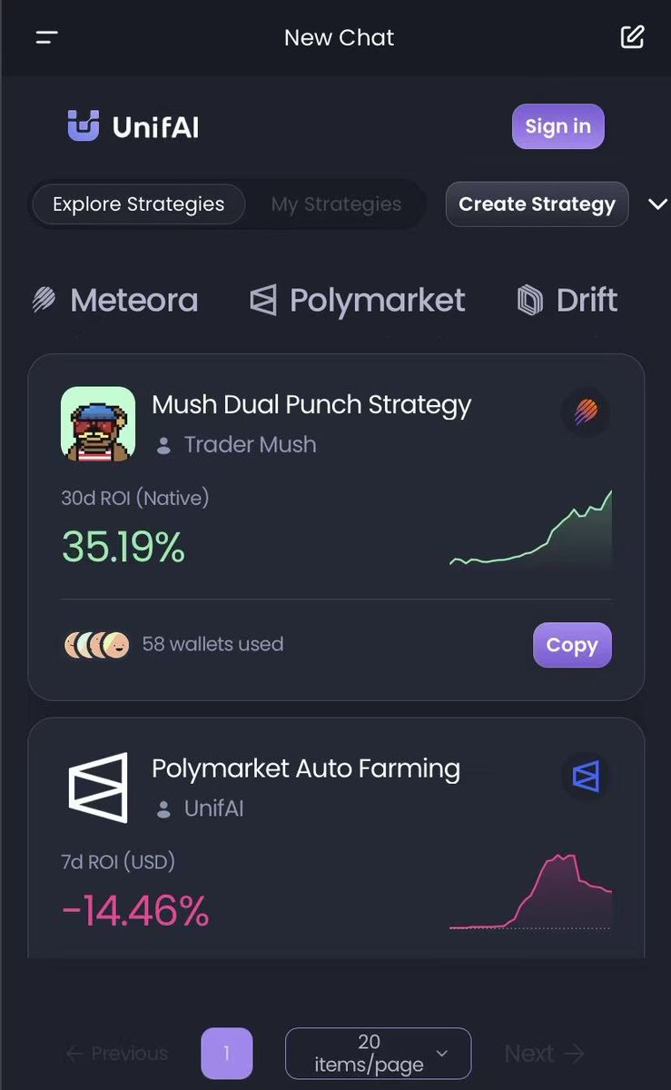 AI Agent交易已经进化的非常恐怖,UnifAI( $UAI )这个AI项目很有趣,在Meteora上做LP,在Polymarket上玩预测,在Drift上跑永续 他们把一场60000 $UAI 的Polymarket AI交易大赛开起来。比啥?不比嘴炮、只比成绩。UnifAI( $UAI )长期在Polymarket的Top10 Builder榜上,又进了100万美元建设者计划 我喜欢它的地方很接地气:普通人用它,不用装专业,也不用守着屏幕。把你的想法打出来,让代理自己去拉数据、下单、止盈止损、复盘升级。开发者用它,也不是闭门造车 把你会的那点“聪明”做成模块,丢给别人用,按成绩分成。一句话:不发空洞信号,只看能不能帮你把钱挣到手 落地在哪儿?已经能跑起来的有三块: 在 Meteora 上做 LP,在 Polymarket 上玩预测,在 Drift 上跑永续。下一步会把 Hyperliquid / Opinion Labs / PancakeSwap / Lighter 一起接上来 想象一下:一个代理同时盯住不同场子,左手赔率,右手合约,中间做套保、再平衡、跨平台价差 这不是“AI概念”,是会动的赚钱机器 很多人问“这玩意儿到底值不值?”我的感受是: 第一,它把“聪明”变成动作,而不是一堆图表。你写逻辑,它去执行;做错了,回头自己改。人不可能 7×24 小时在线,代理可以 第二,它把分散的机会拧成一根水管。预测热度起来了,永续那边的方向、仓位、风险怎么配?以前靠手感,现在交给代理去跑方案 第三,它够现实。 $UAI 已经在一堆交易所挂了,策略—成交—分润—代币的闭环是真能跑的,不是画饼 偏主观的判断给你三刀: 谁先把 Hyperliquid 这种“流量心脏”接通,谁先吃到大块肉。 预测×永续×LP 串起来,才叫现金流引擎 Agent 的胜率会越来越像人类团队:有的擅长趋势,有的擅长套利,有的做风控,你挑组合,不再孤注一掷 下一轮拼的不再是“谁喊单更响”,而是谁家代理更能扛回撤、守住收益。 情绪会散,成绩会留 行动建议就两步: 去 Polymarket 看他们的比赛,盯榜单别光看热闹。找个你最熟的场子(Meteora/Drift 任挑一个)丢个小仓位给代理试跑一周,自己体会“省心”值不值钱。等 Hyperliquid / Pancake 接上来,再加码也不迟 留一句我自己的结论: 下个牛市真正的 alpha,不在KOL嘴上,在AI Agent的手上。UnifAI( $UAI )已经把手接上了