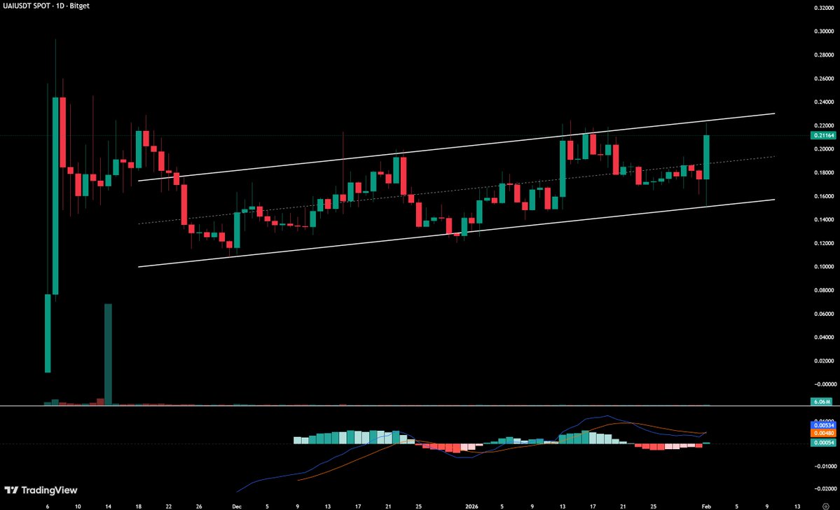 $UAI is already breaking out of its ascending channel on lower timeframes. What matters more is this didn’t follow the broader market down. While others were bleeding, it stayed bid. That kind of relative strength usually shows up before the move #UAI