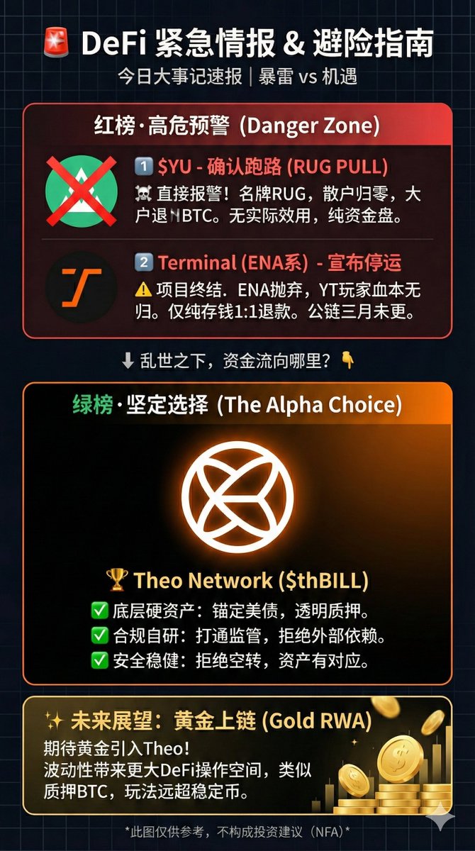 thBILL/ULTRA这条线,渣打+Libeara+S&P的组合拳,已经把门槛拉到别人短期追不上的高度。我个人非常看好Theo在这条赛道能吃到最大一块蛋糕。原因很简单:流动性做得最好(Hyperliquid、Morpho、Euler全覆盖),收益又真实可验证。2026年美债收益率大概率还要高位震荡,这类产品会成为DeFi的新现金,既能当stablecoin用,又能持续吃息。