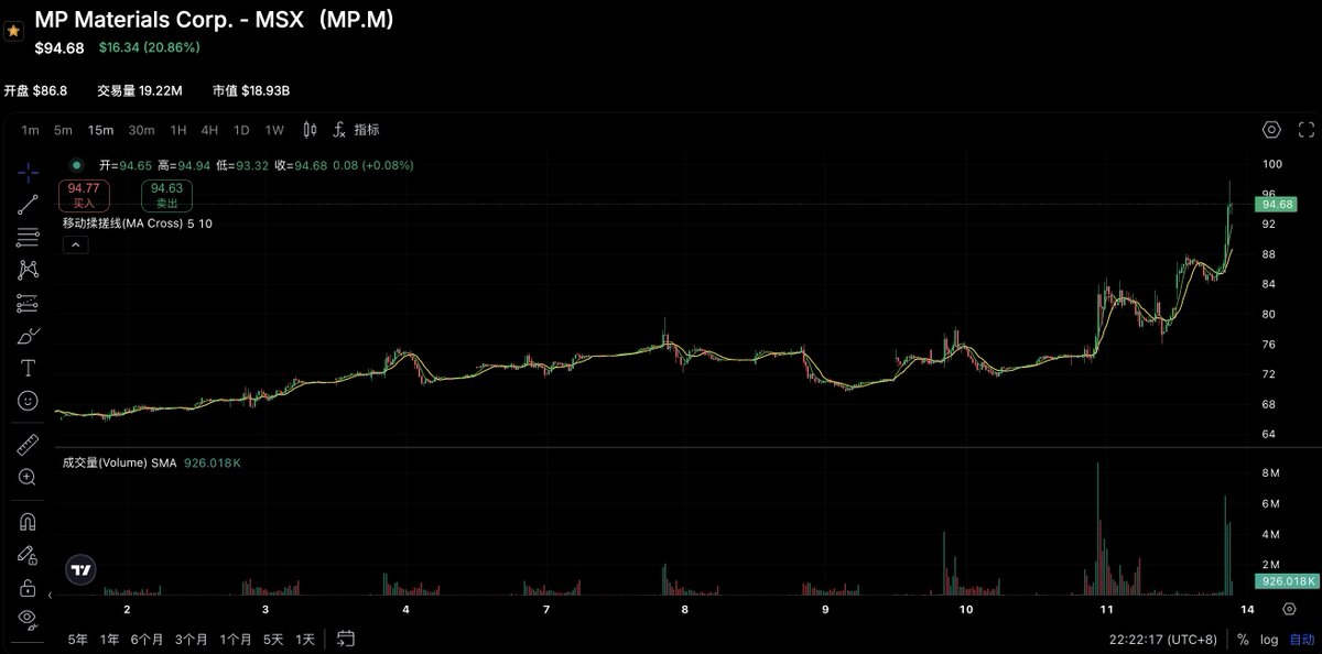 不得不说股市的节奏确实很慢,MP 我拿了足足三个月整才有了点推背感,另一个股 $USAR 也是拿了一个月,直到现在稀土战爆发之后才跟着爆发,同时 A 股那边稀土今天也很猛……按月拿的股票实在拿得很这么,得少看少动