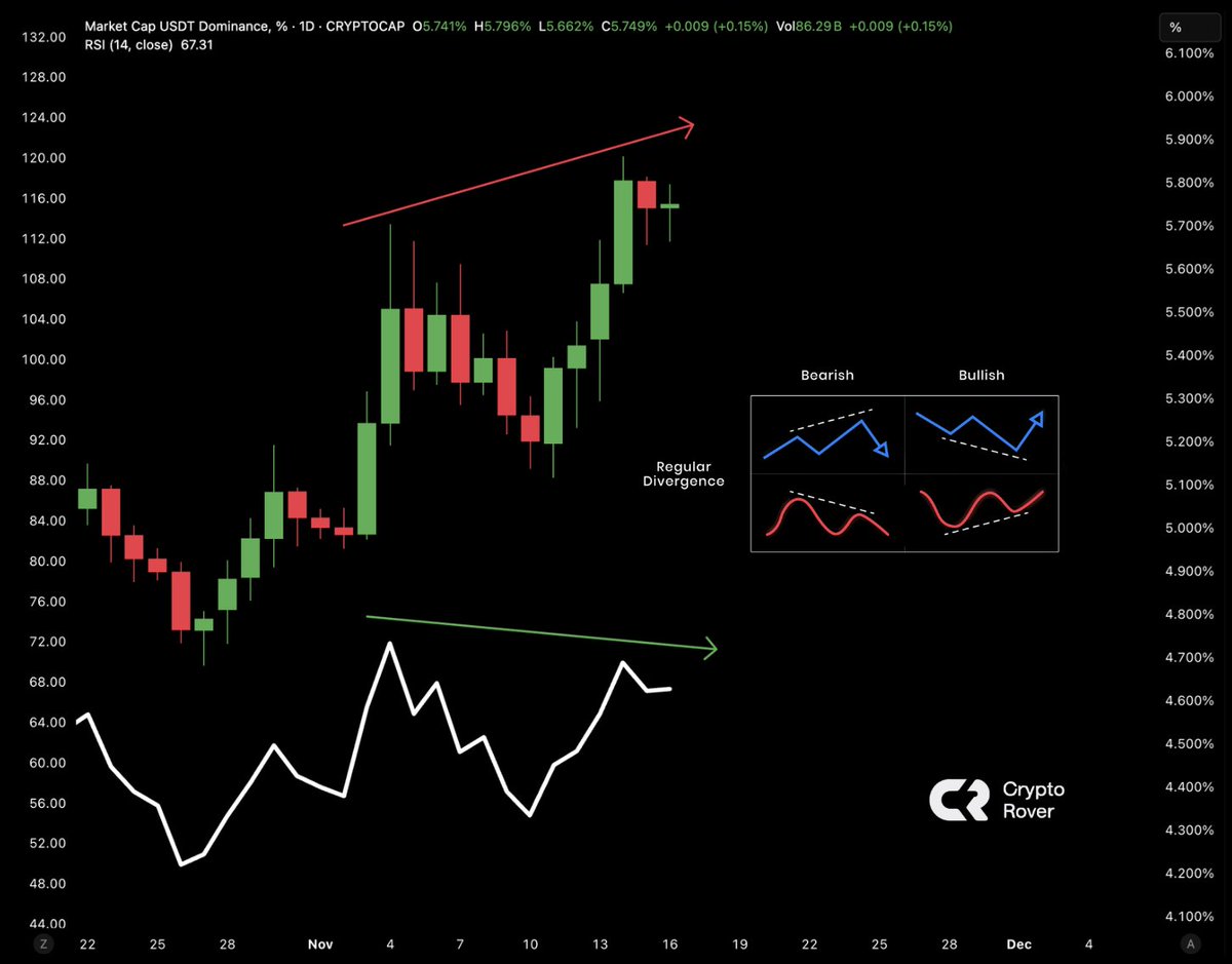 $USDT.D bearish divergence. Potentially bullish for crypto.