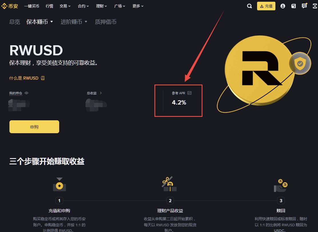 RWUSD 背后挂钩的是代币化美国国债,是现实世界中最稳健的资产之一。再加上币安自身补贴收益,保本机制更稳,本金不缩水的同时还能每天躺赚收益。