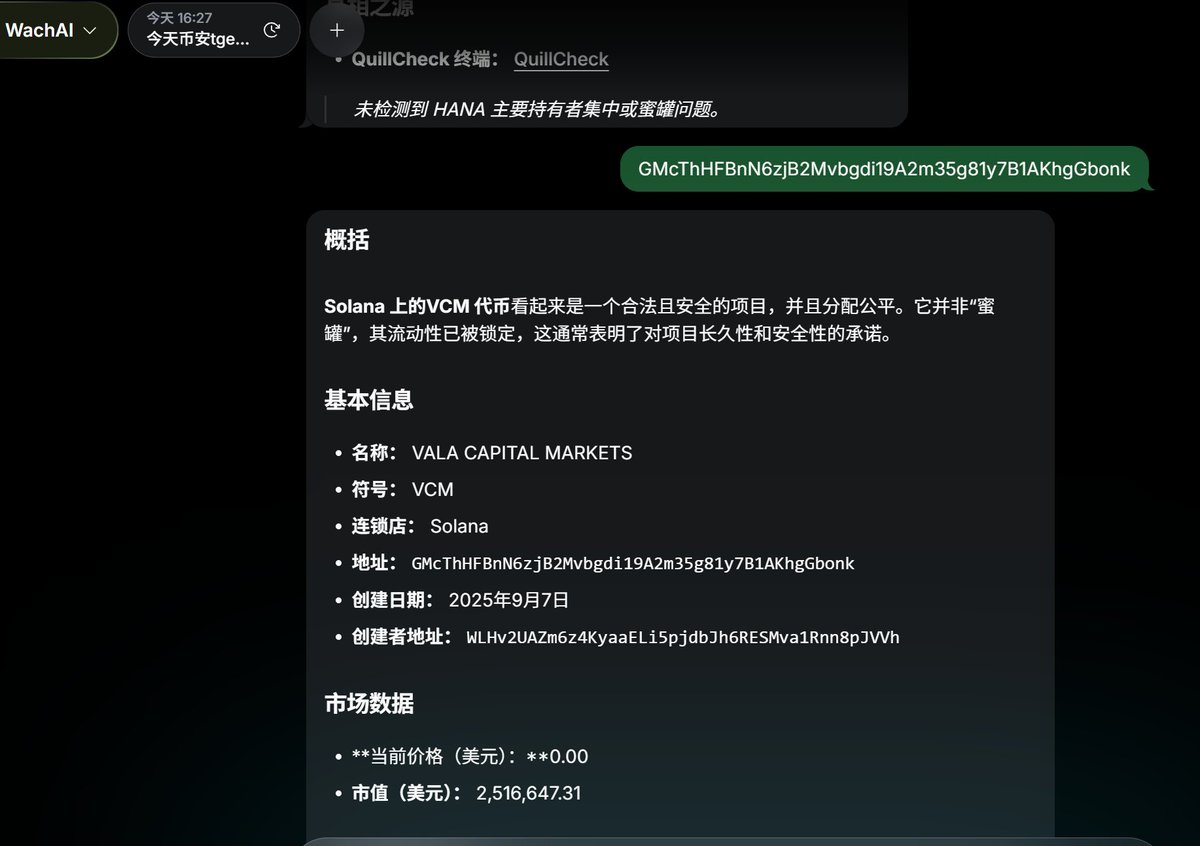 打开 Warden 应用,把合约地址粘贴进 WachAI 代理,系统几秒内就自动出全维度风险报告,不用再花几小时翻链上数据、查白皮书,一个指令就能搞定以前的体力活。