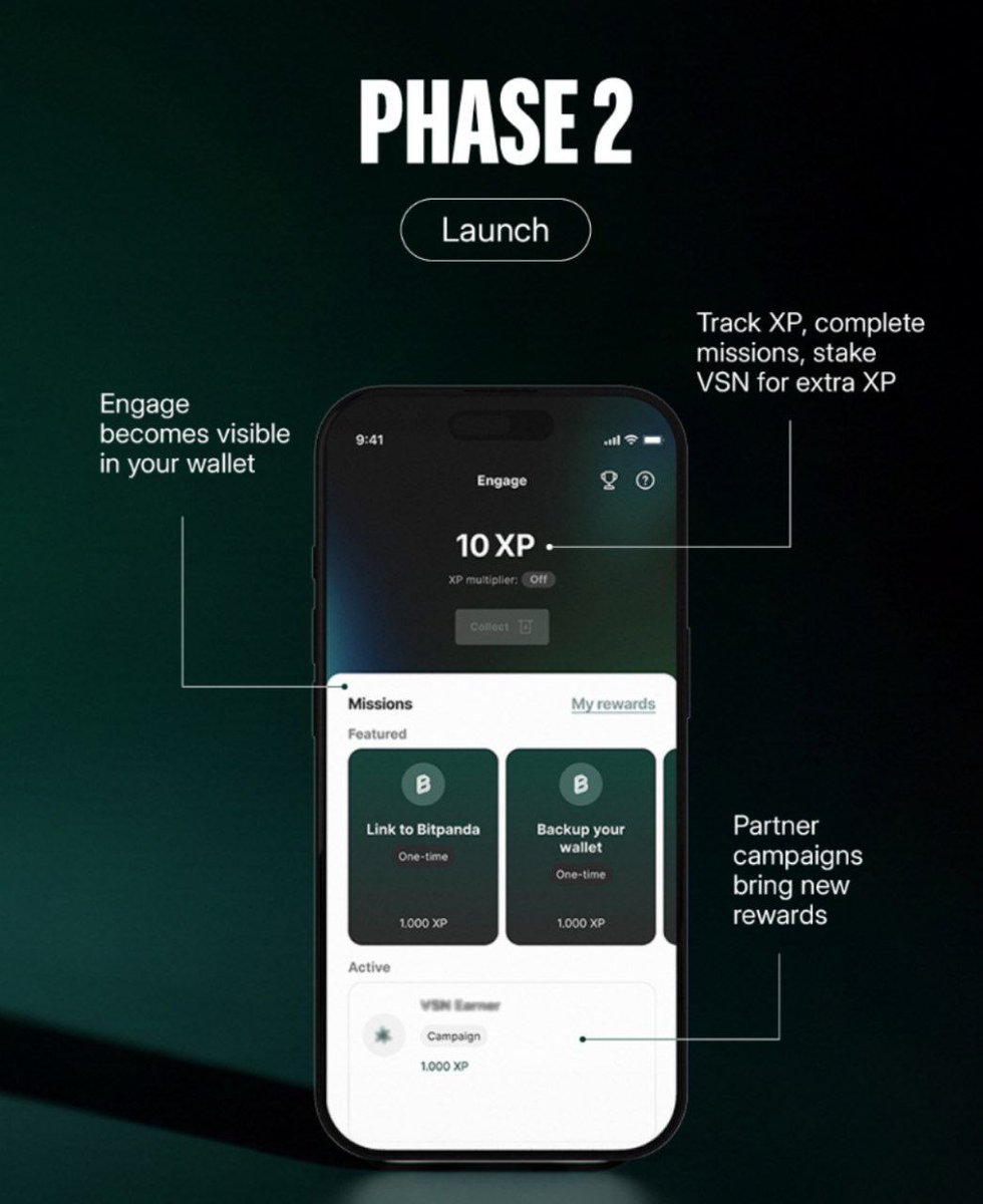 The Vision airdrop campaign has officially entered Phase 2, with Engage now live inside the @BitpandaWallet. You can track your XP, complete missions, and boost your progress by staking $VSN, which directly increases your XP multiplier.