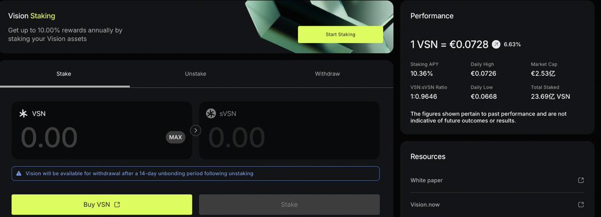 (可直接透过 Vision Protocol 质押 https://t.co/lAefRRNV5z)