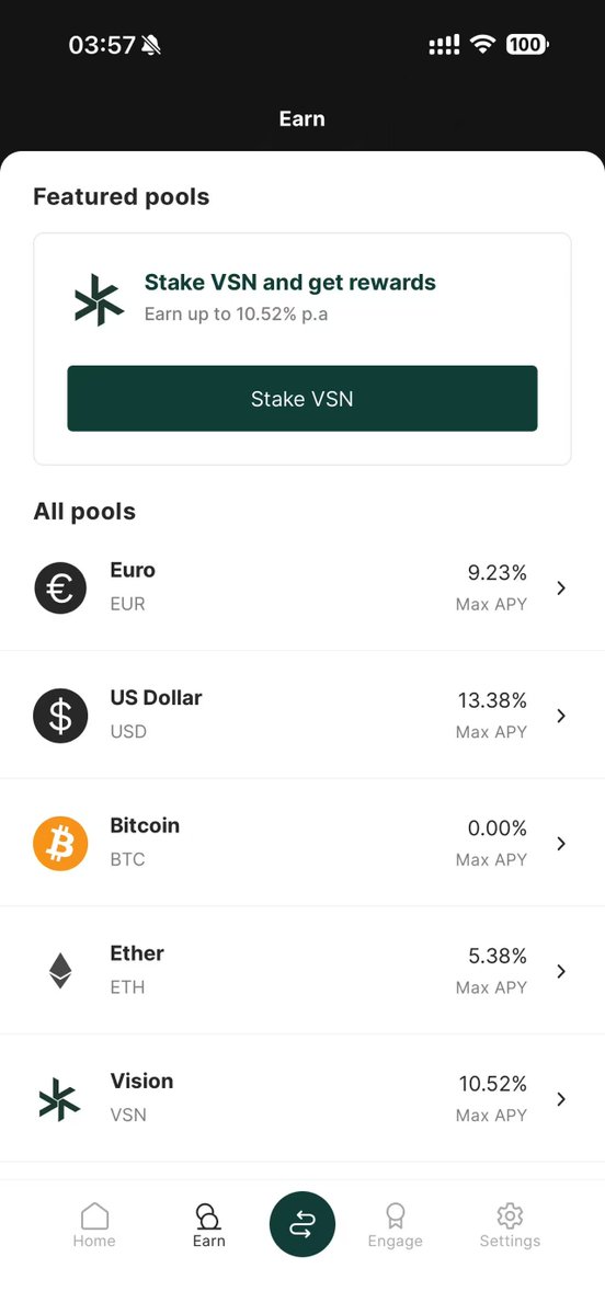 目前可以用 @BitpandaWallet钱包或是在他们官网质押,有10%的收益,而且VSN还有生态折扣和后期 Launchpad 的福利,目前空投活动也在进行中,在 Bitpanda Wallet 完成任务或质押就可以累积积分。