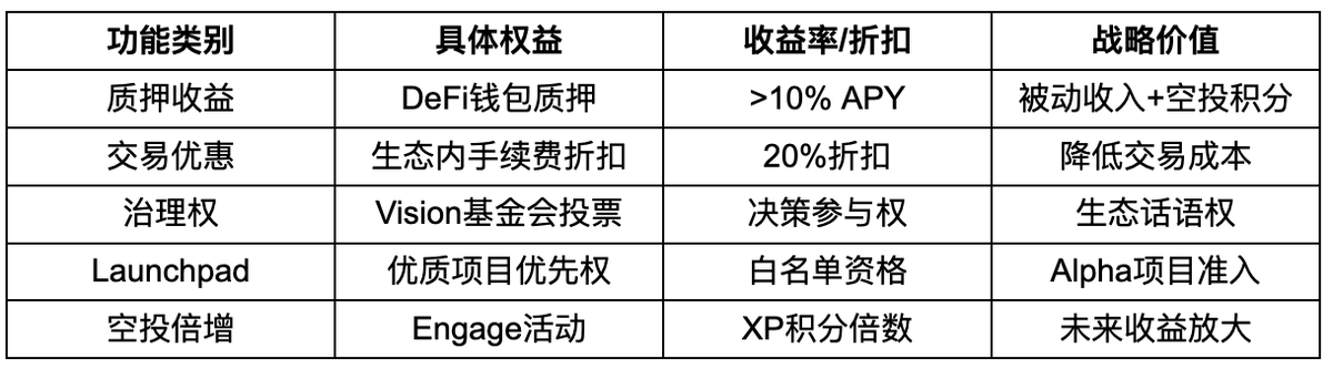 ➤ 生态赋能: $VSN 是未来 Vision Launchpad 的金铲子,还能作为生态空投活动的积分加速器。