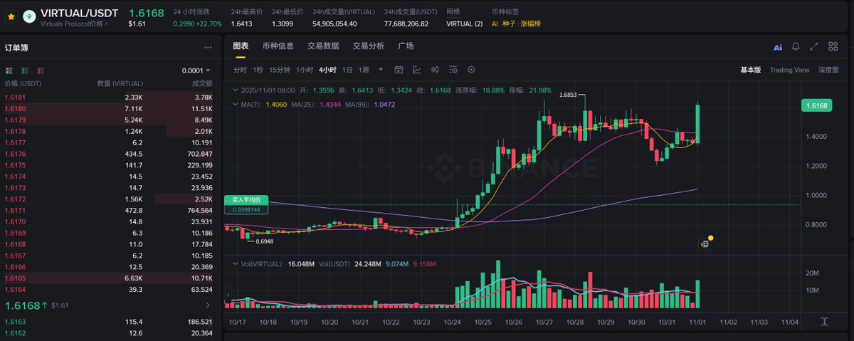 今天 $VIRTUAL 放量走出了独立行情,冲上币安涨幅榜第一,如此大涨你可能会刷到很多博主发推蹭,但绝大多数其实都不怎么懂,也玩不转 @virtuals_io 生态