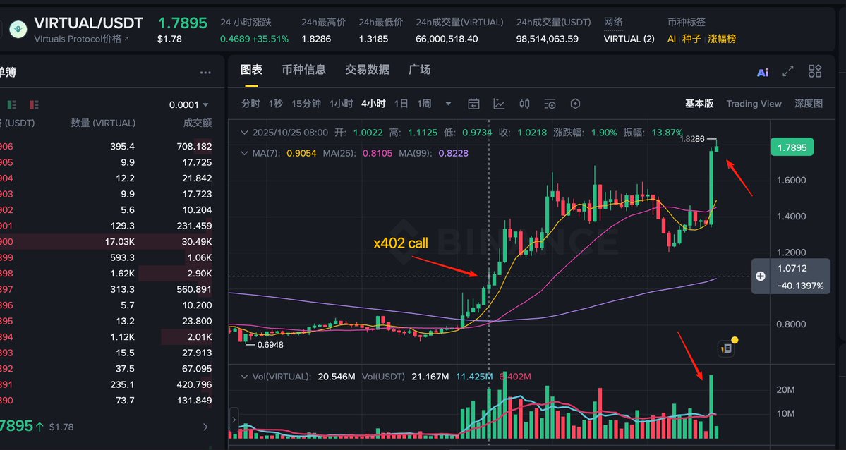 今天各个钱包都直接把 Virtual 放进了x402代币列表,就是这个原因。