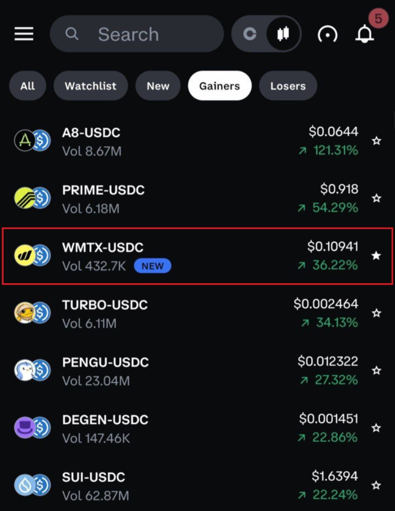 $WMTX is among the top movers across @CoinMarketCap and @coinbase today. Real usage has gravity. Markets notice fundamentals. We keep building. 😎